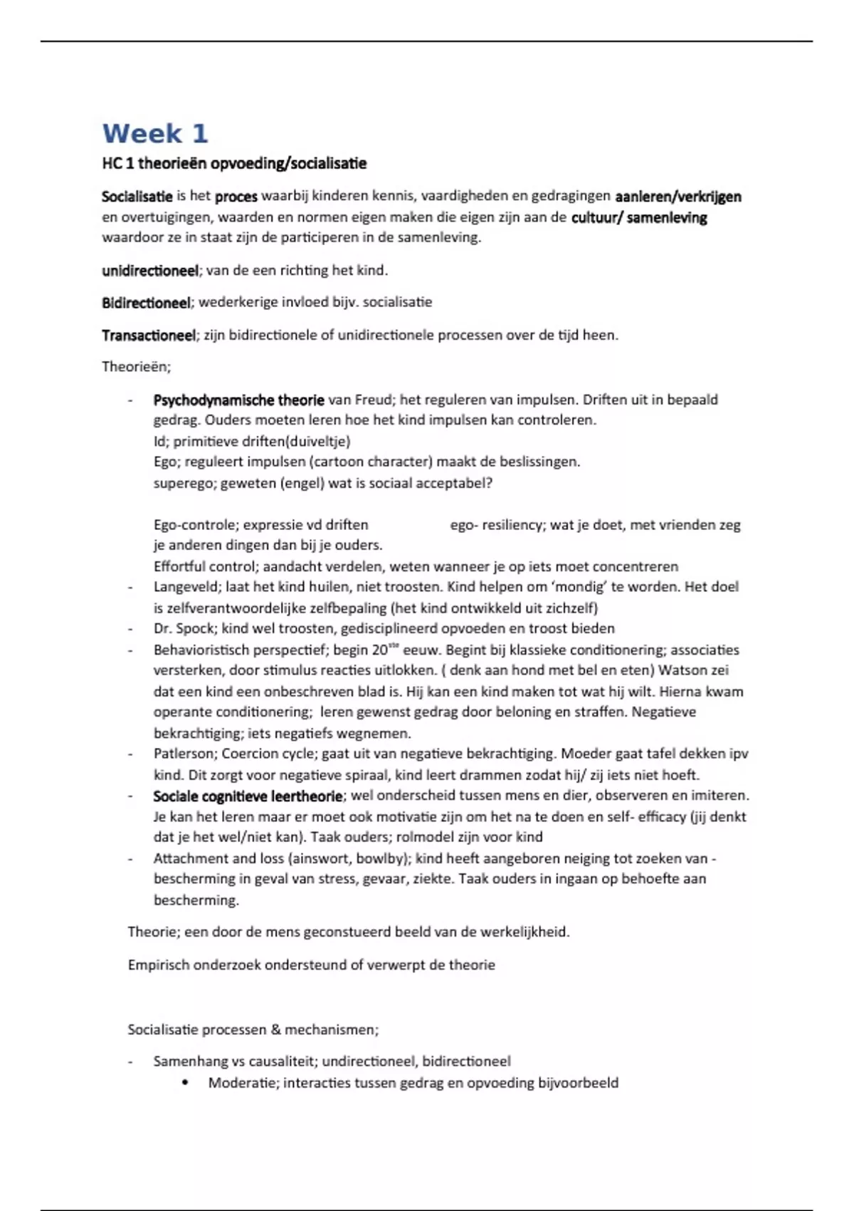 HC 1 theorieën opvoeding/socialisatie