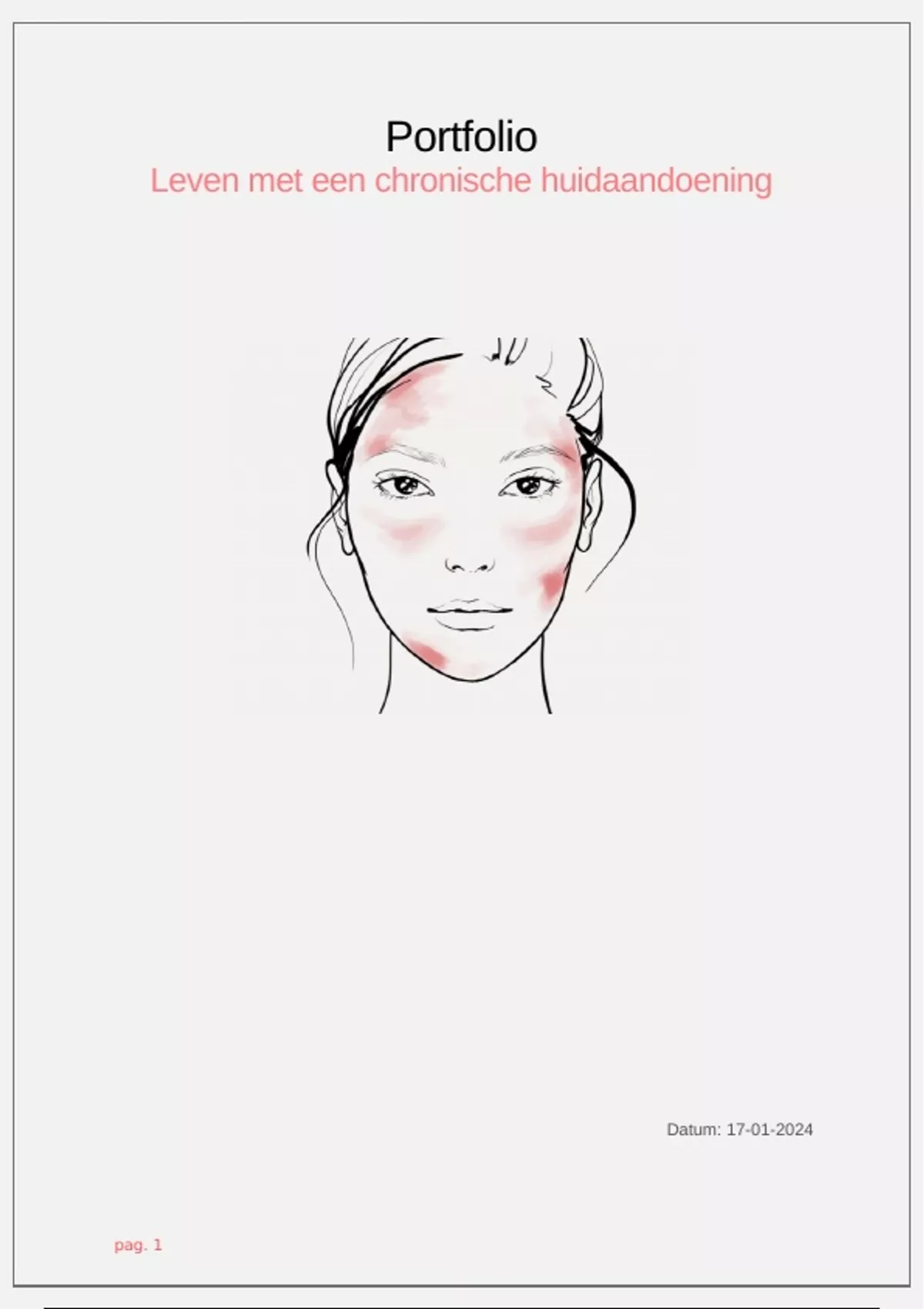 In dit document vind je de volledige uitwerking (inclusief zelfstudietool!) van het portfolio assessment van Cursus 2 Leven met een chronische huidaandoening, studiejaar . Ik ben voor dit portfolio beloond met een 9,0! Je kan mijn portfolio dus mooi gebruiken als hulpmiddel.