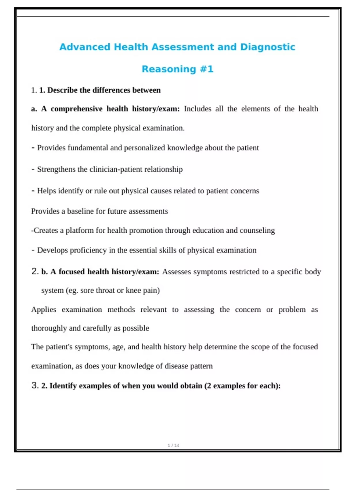 a. A comprehensive health history/exam: Includes all the elements of the health