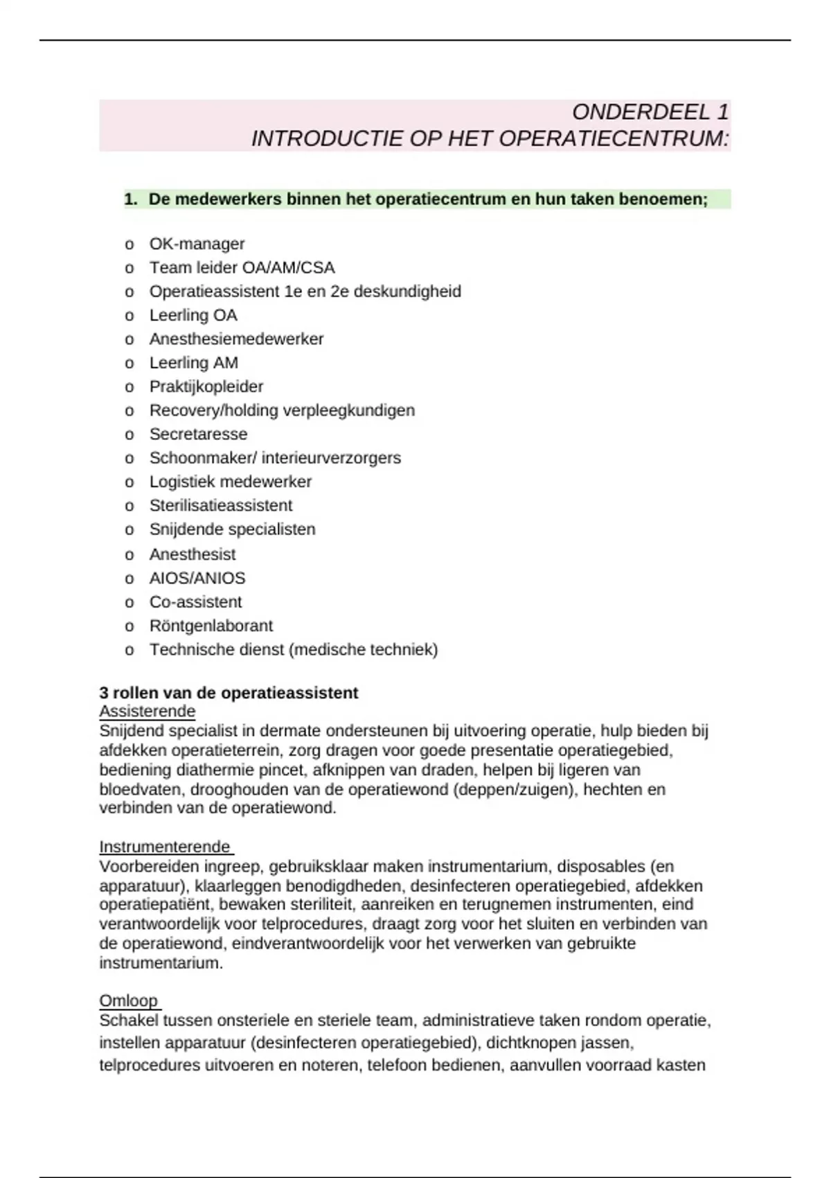 1. De medewerkers binnen het operatiecentrum en hun taken benoemen;
