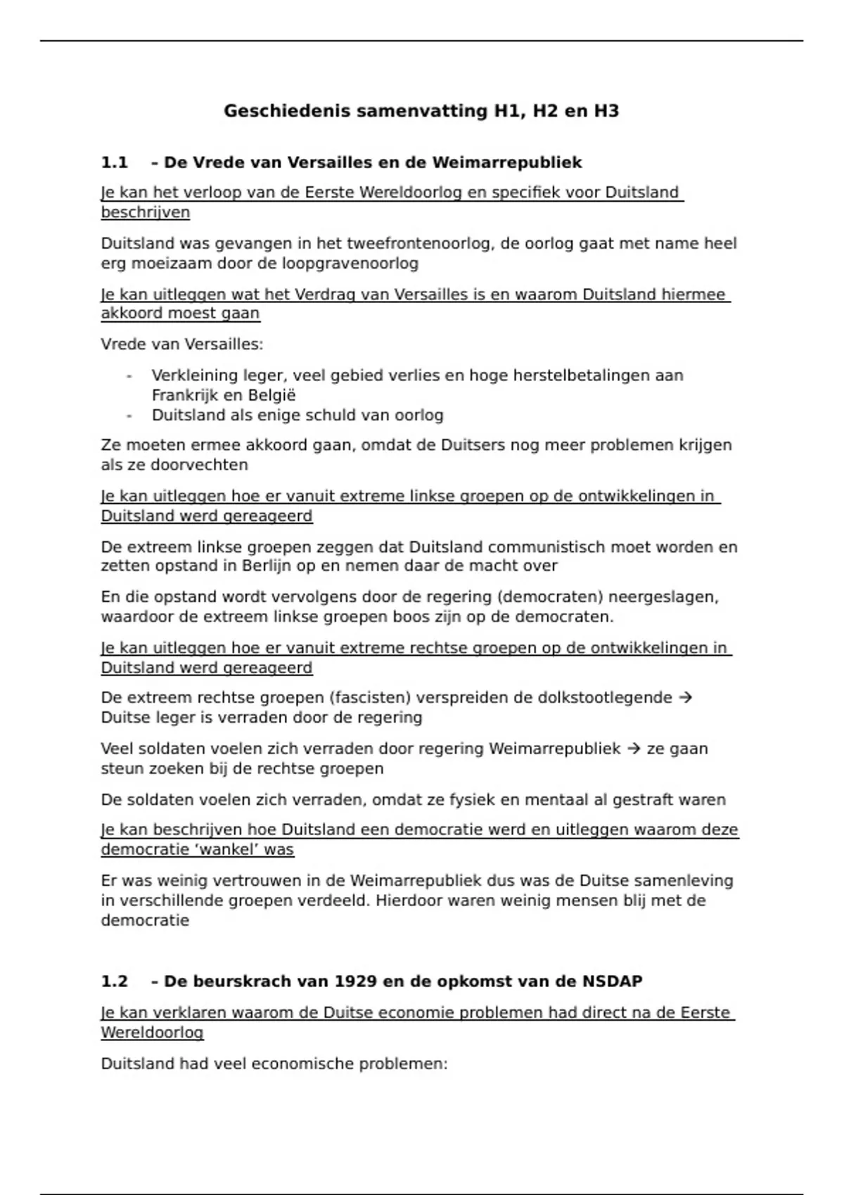 1.1 – De Vrede van Versailles en de Weimarrepubliek