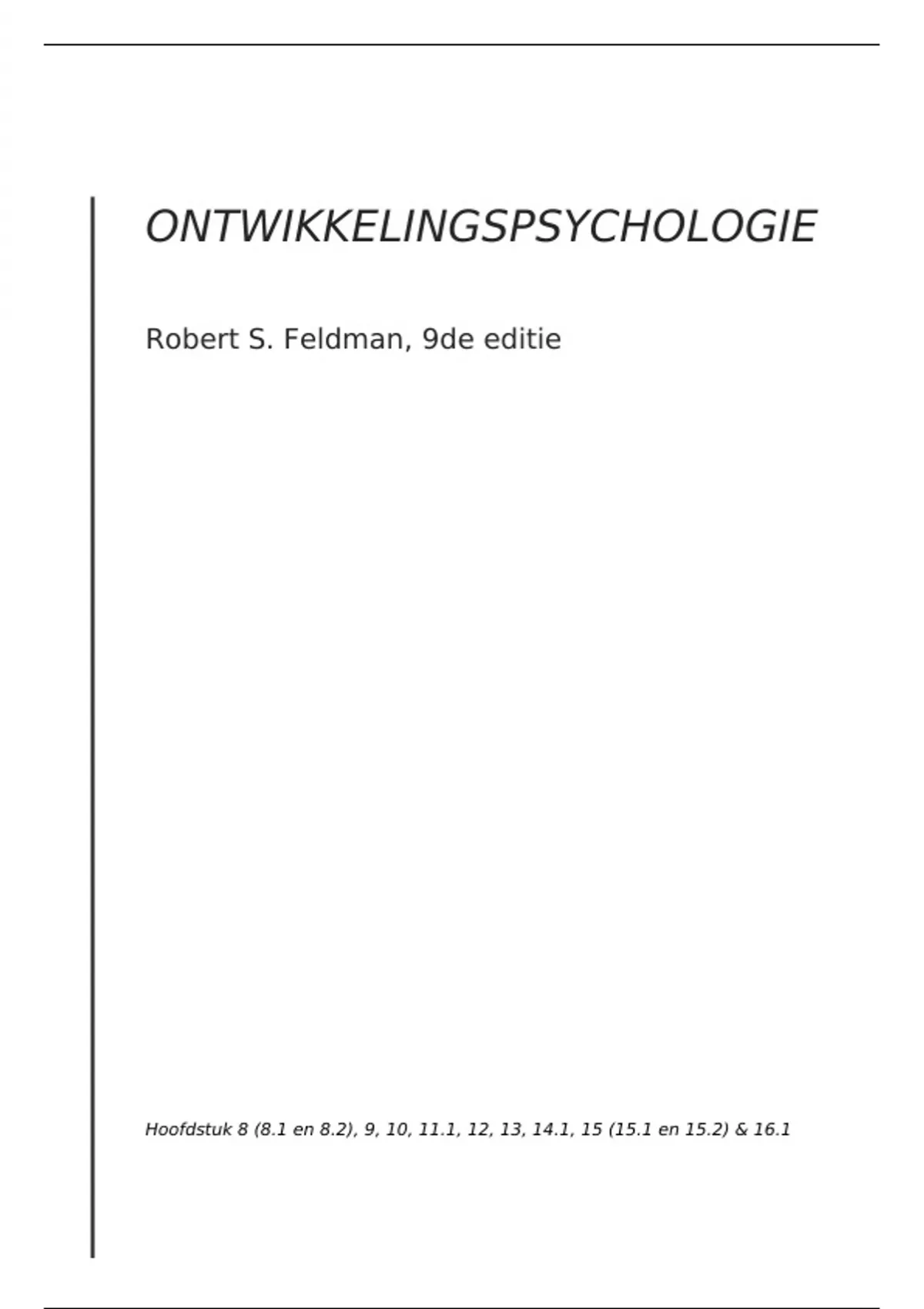 Boek: ontwikkelingspsychologie, Robert S. Feldman, 9de editie