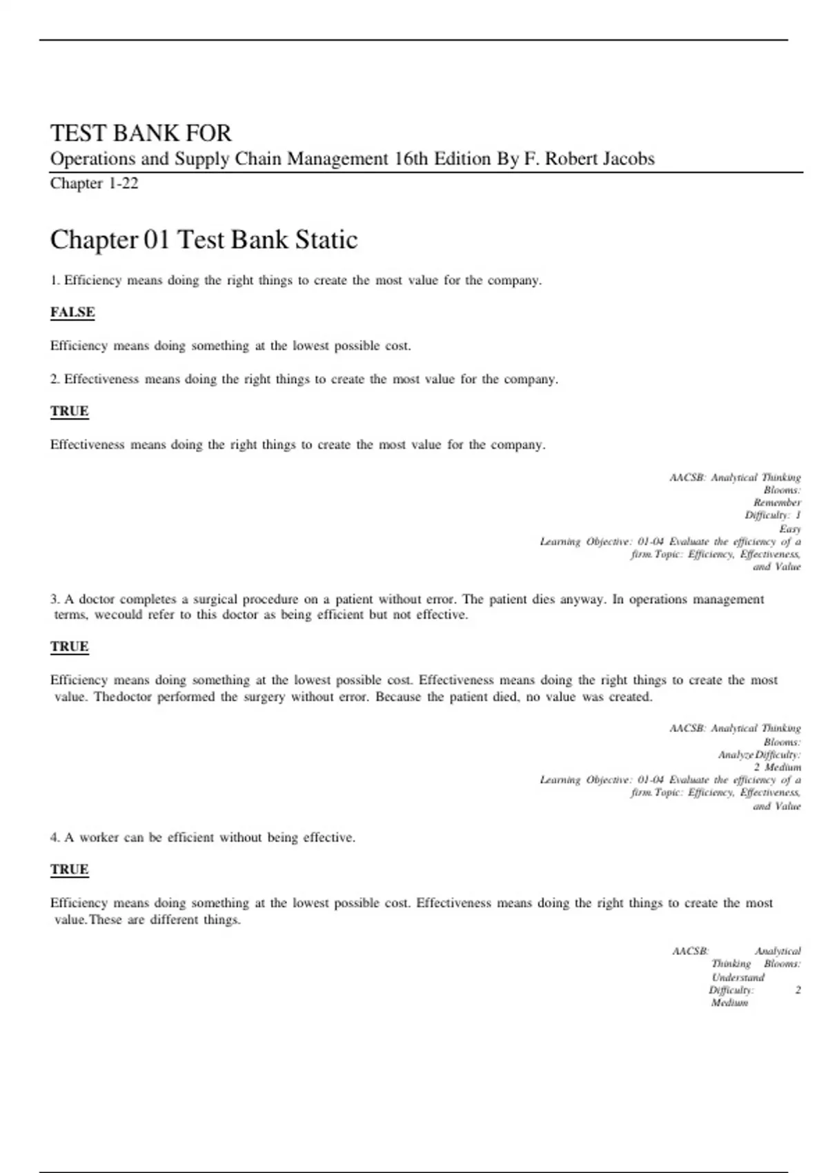 Chapter 01 Test Bank Static m m m m