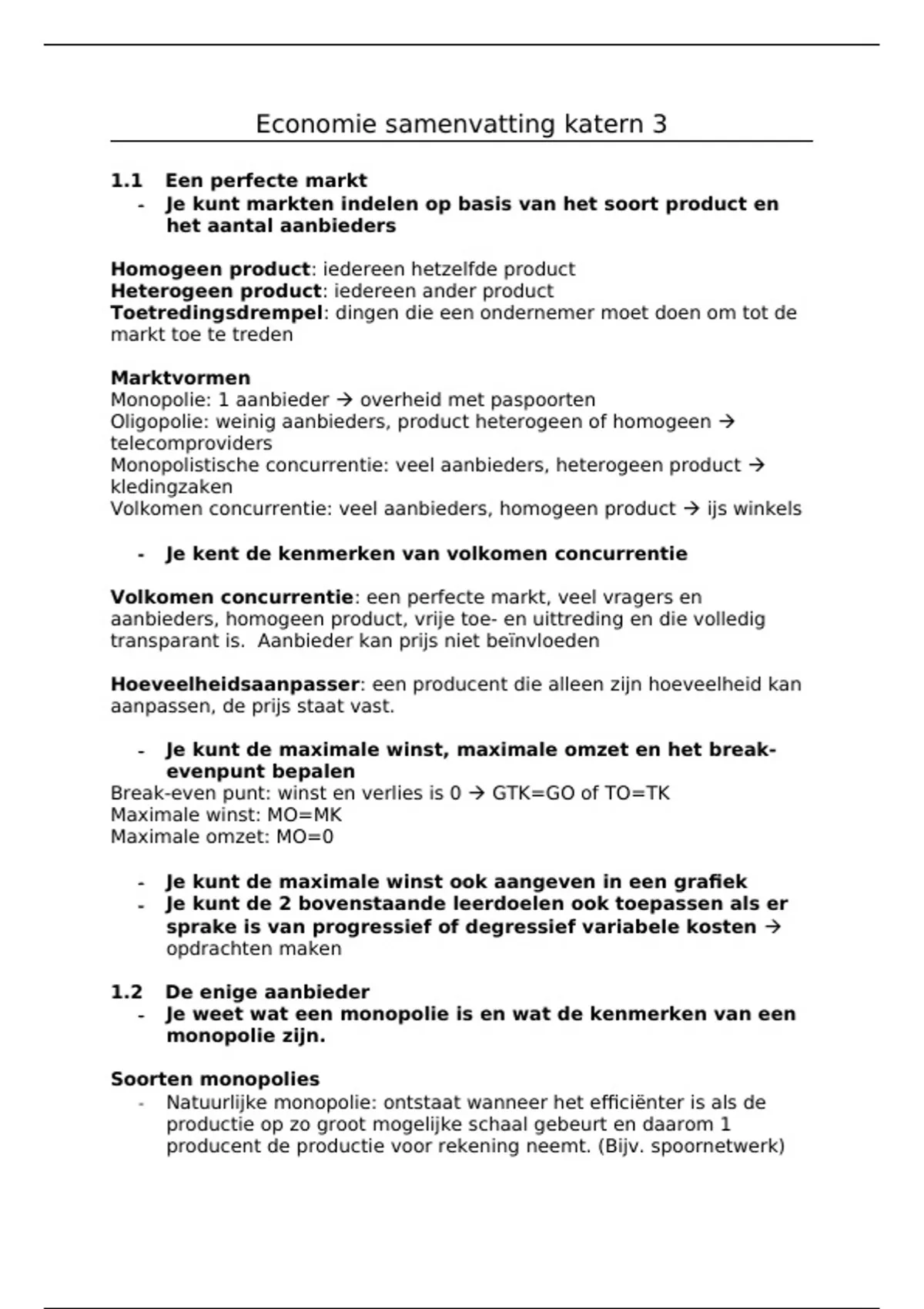 Samenvatting Pincode katern 3 havo Marktvormen en marktfalen - Economie
