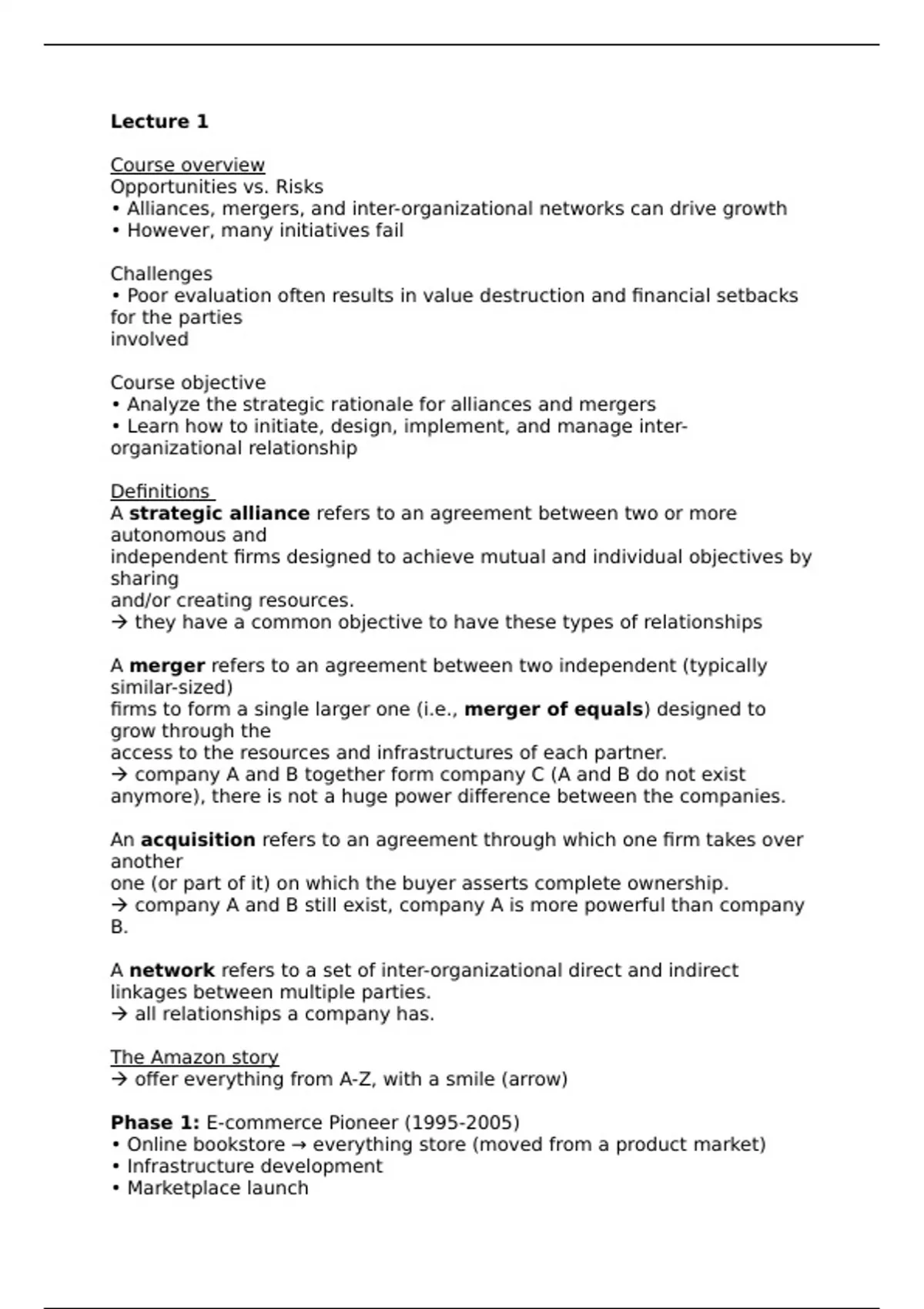 Notes Lectures Alliances, Mergers, and Networks VU BA
