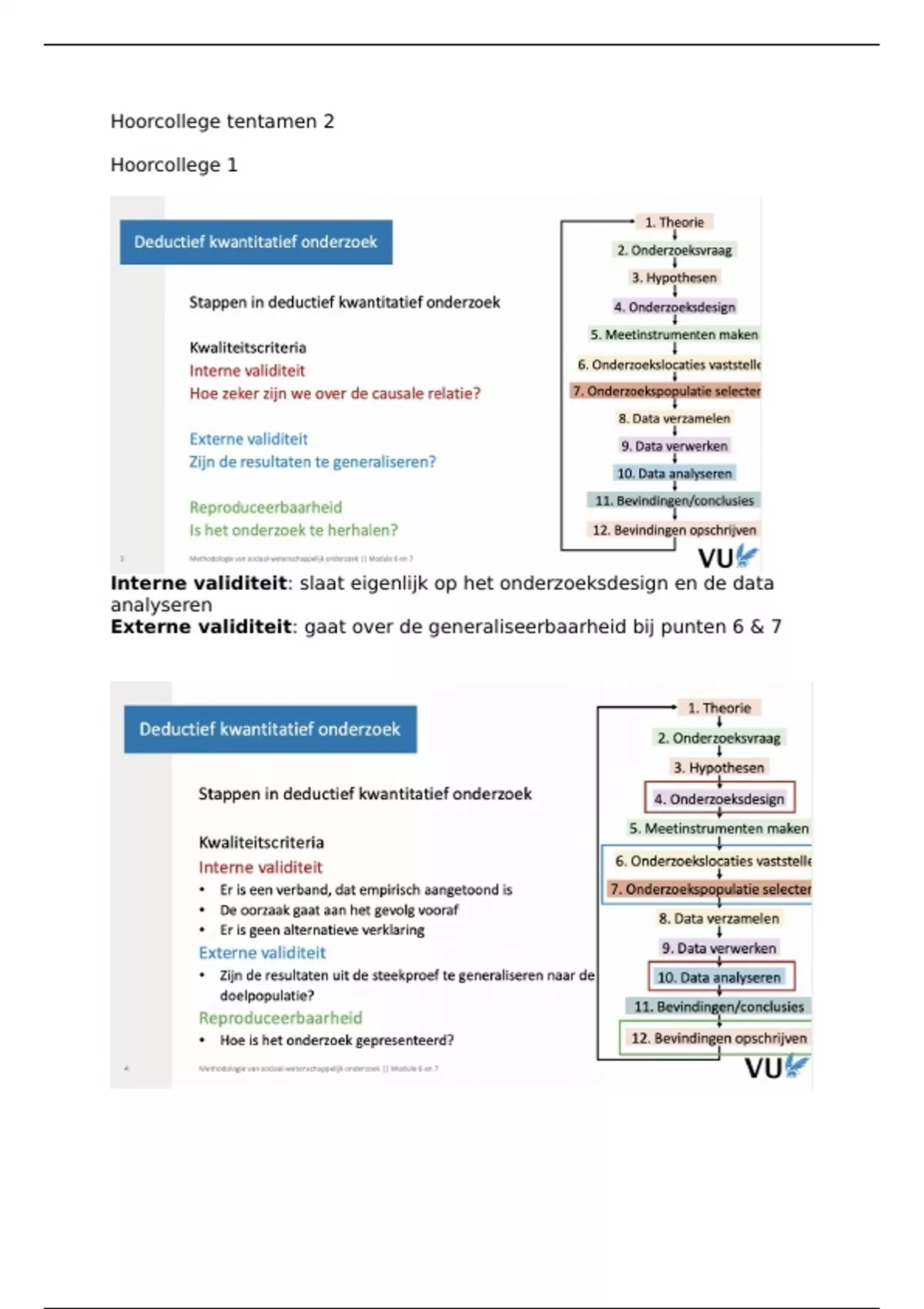 Externe validiteit: gaat over de generaliseerbaarheid bij punten 6 & 7