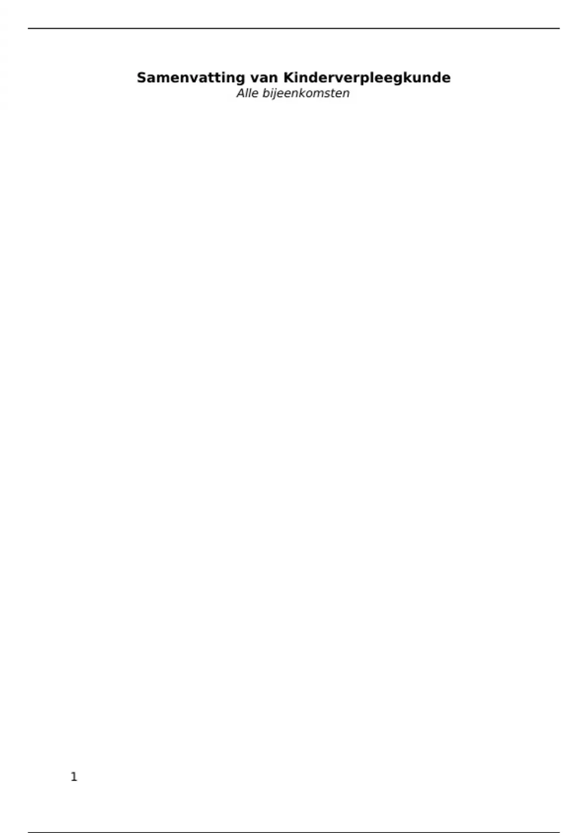 De samenvatting is een gedetailleerd overzicht van de leerdoelen en onderwerpen die behandeld worden tijdens de minor Kind Basis. De samenvatting van kinderverpleegkunde is opgebouwd uit een inhoudsopgave met daarin de verschillende bijeenkomsten en de bijbehorende paginanummers. Vervolgens worden de leerdoelen per bijeenkomst uitgewerkt, met een beschrijving van de relevante theorie.