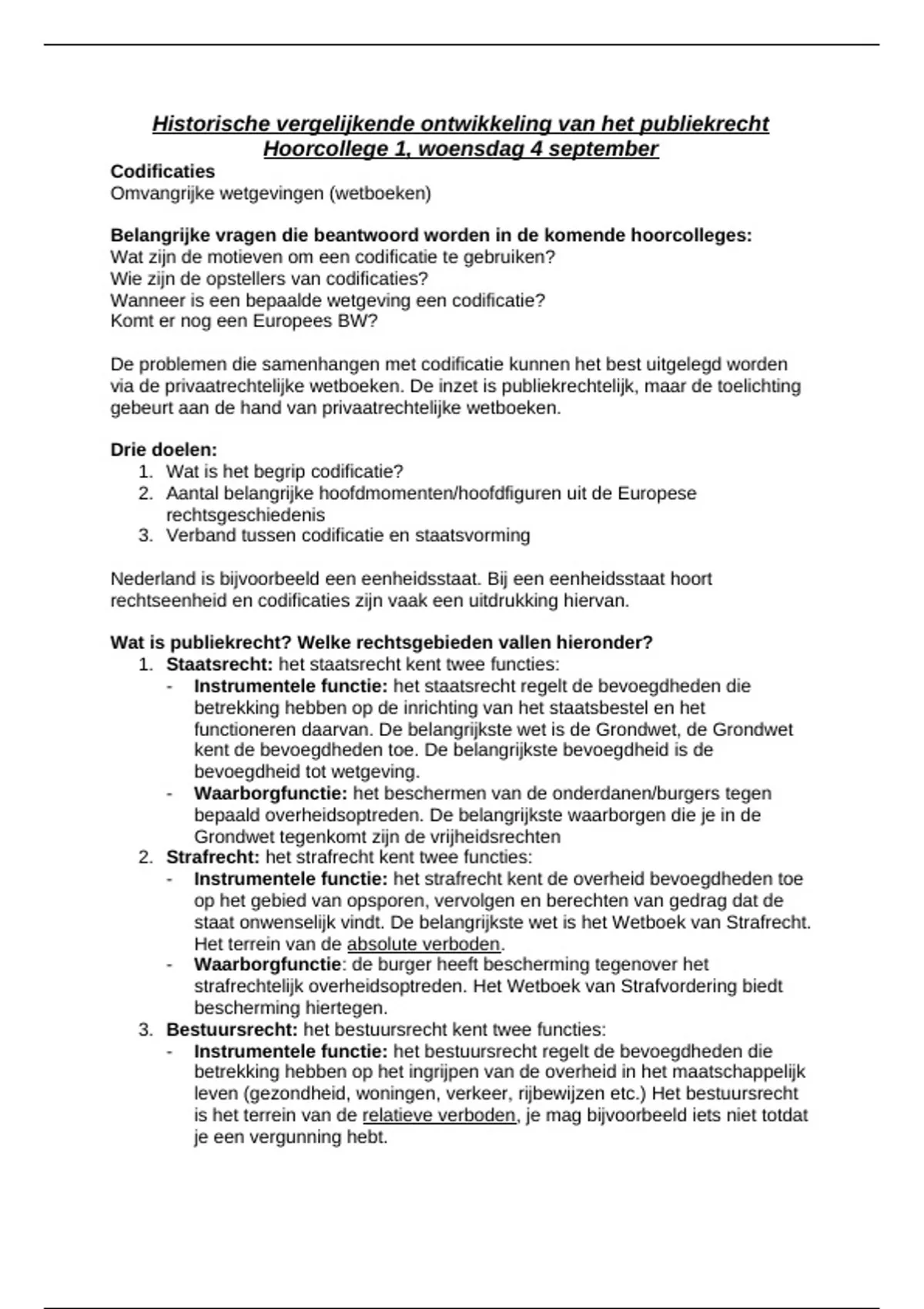 alle hoorcolleges van het vak historische vergelijkende ontwikkeling publiekrecht (jaar )