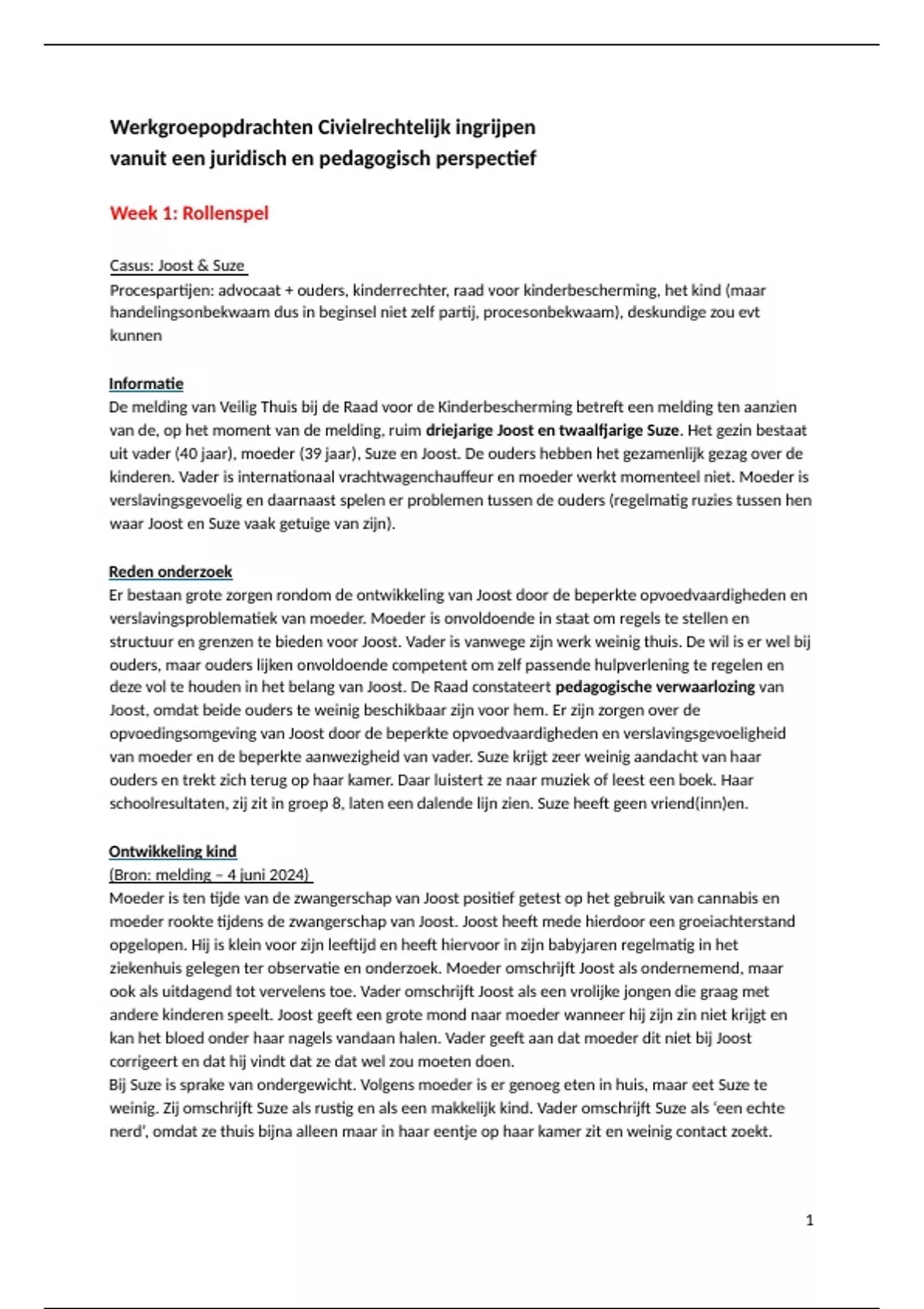 opvoedingsomgeving van Joost door de beperkte opvoedvaardigheden en verslavingsgevoeligheid