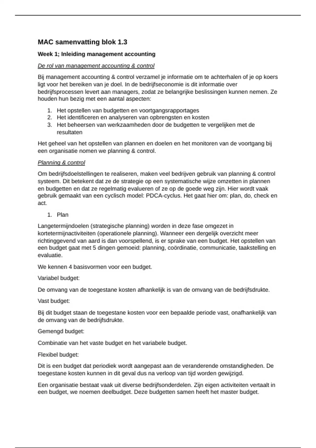 Week 1; Inleiding management accounting