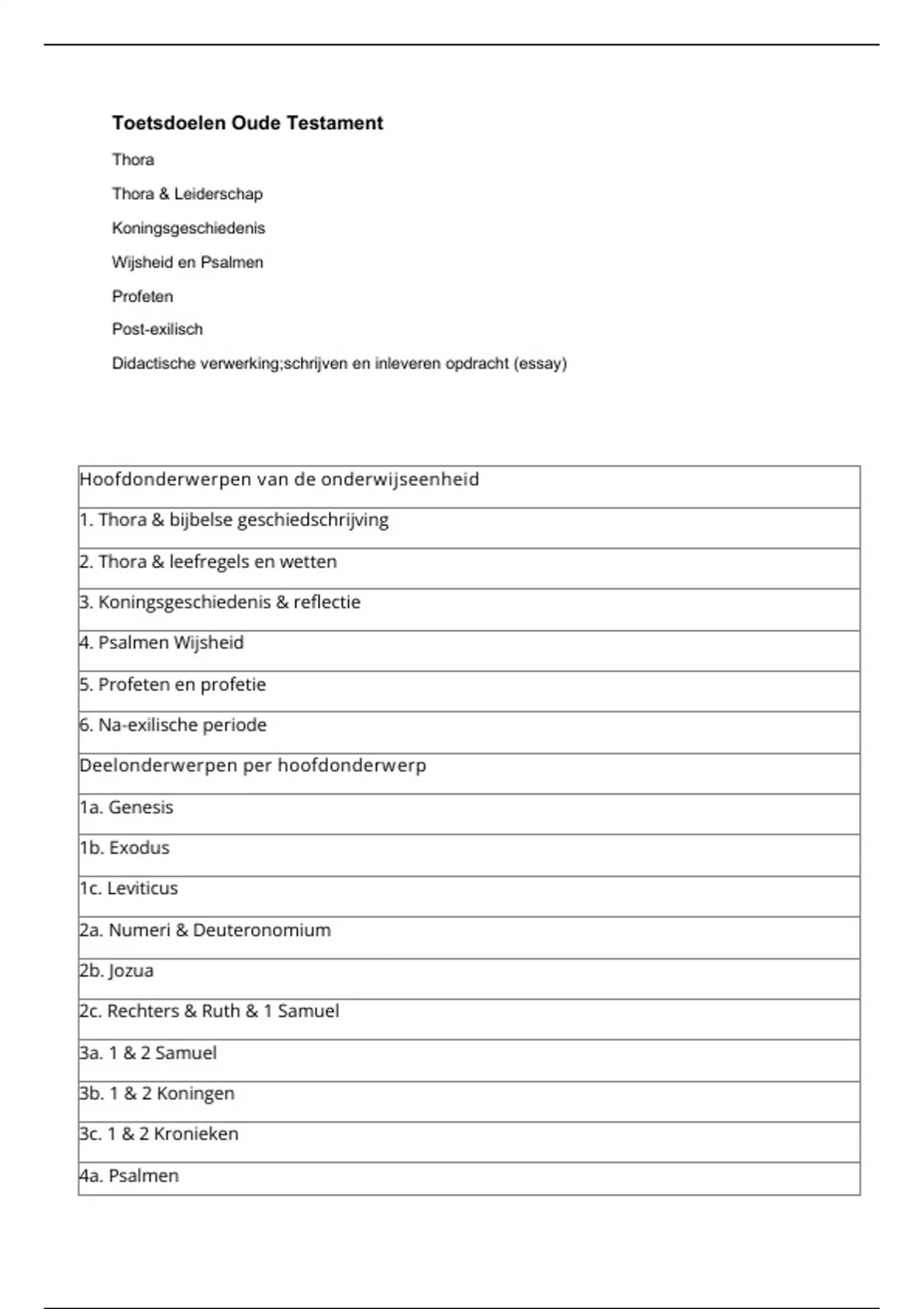 Samenvatting Toetsdoelen Oude Testament