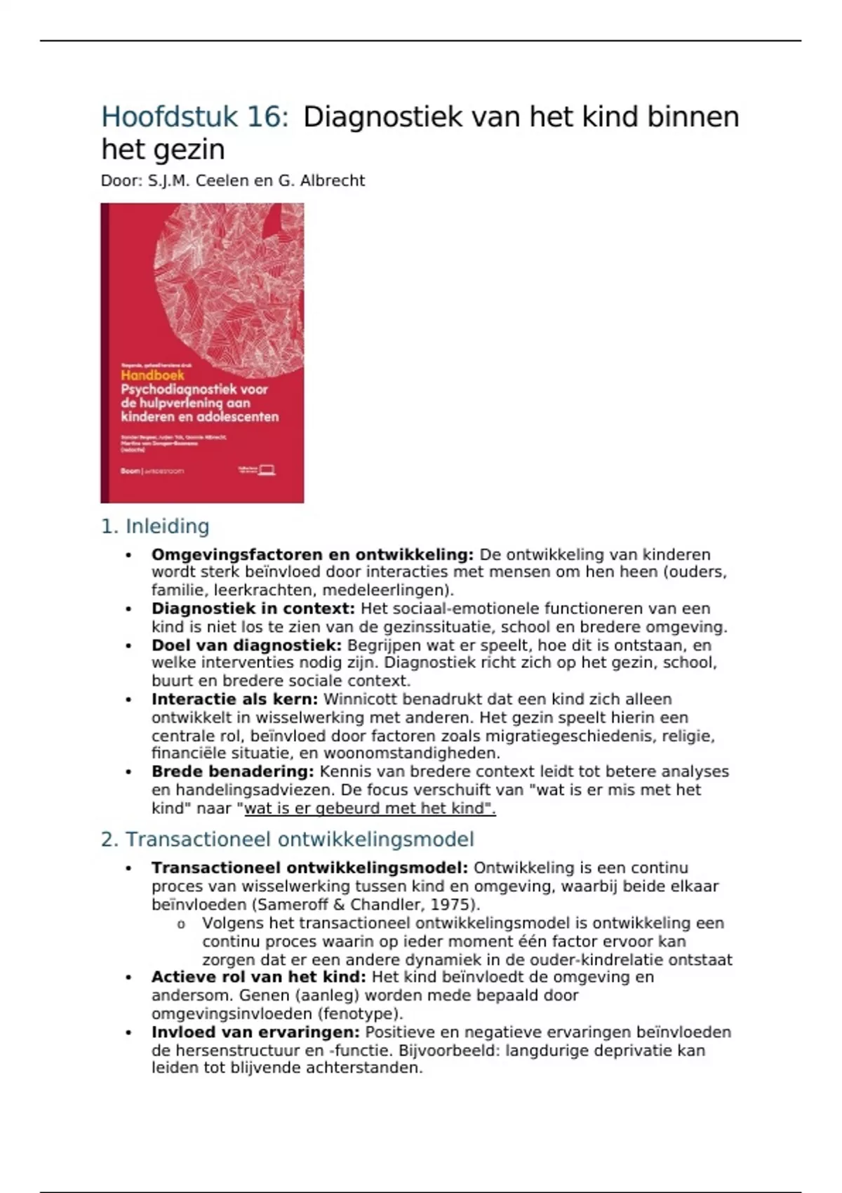 BEGEER (NIEUWE druk) samenvatting van nieuwe hoofdstukken (H16&H17) van Handboek psychodiagnostiek voor de hulpverlening aan kinderen en adolescenten