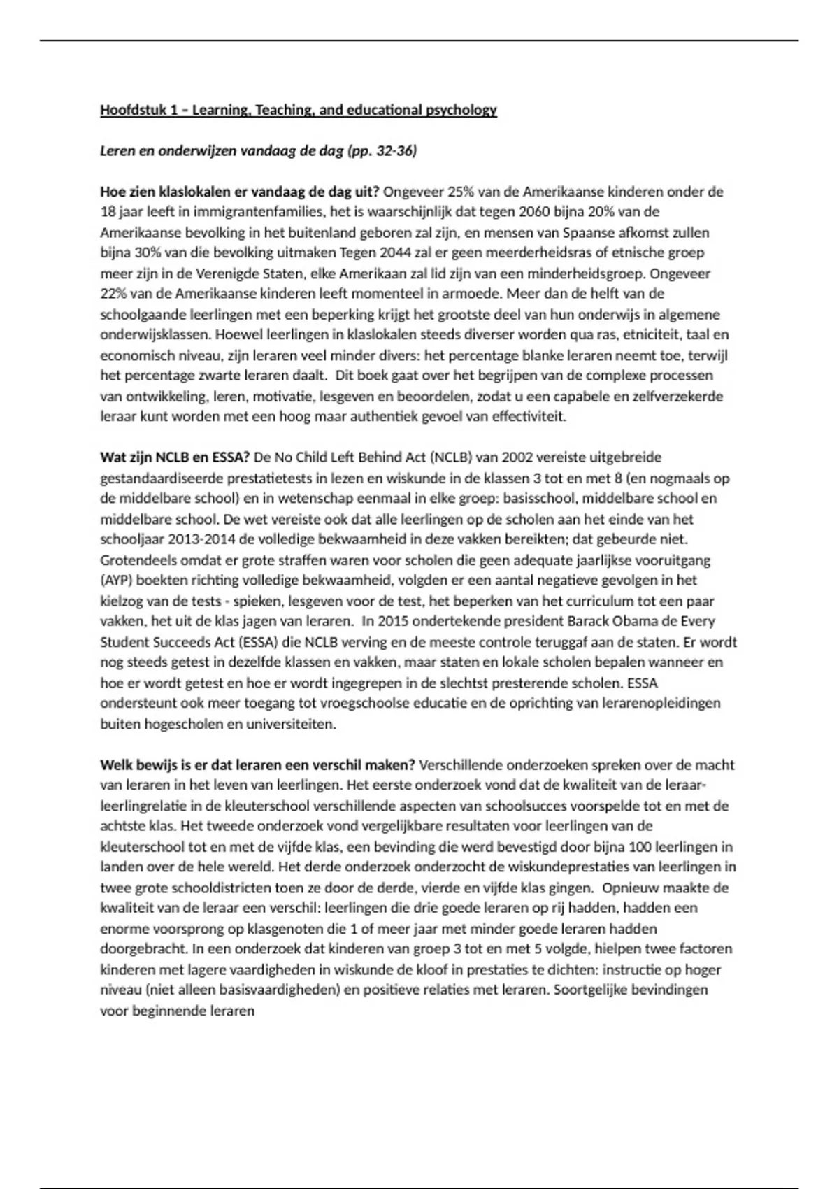 Hoofdstuk 1 – Learning, Teaching, and educational psychology