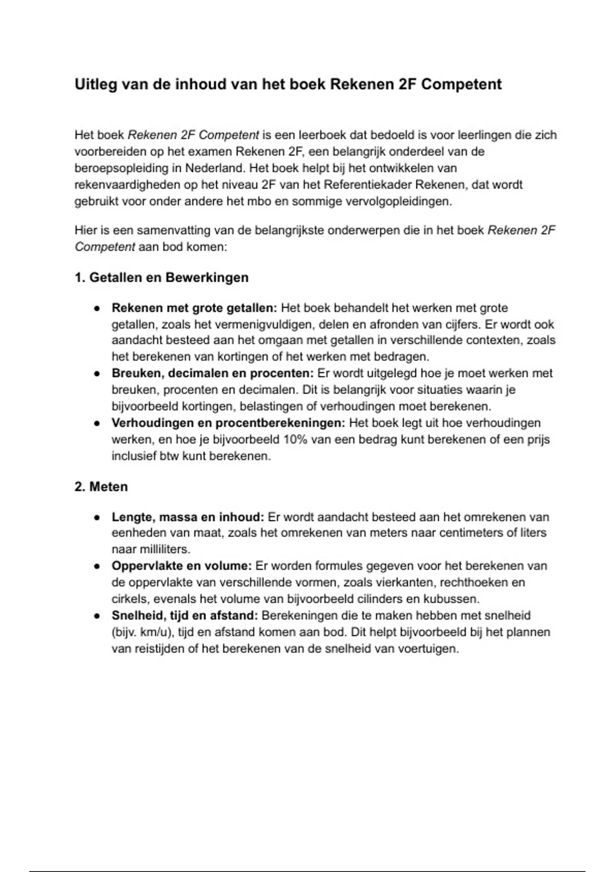 Samenvatting Competent Rekenen 2F - Rekenen 2F