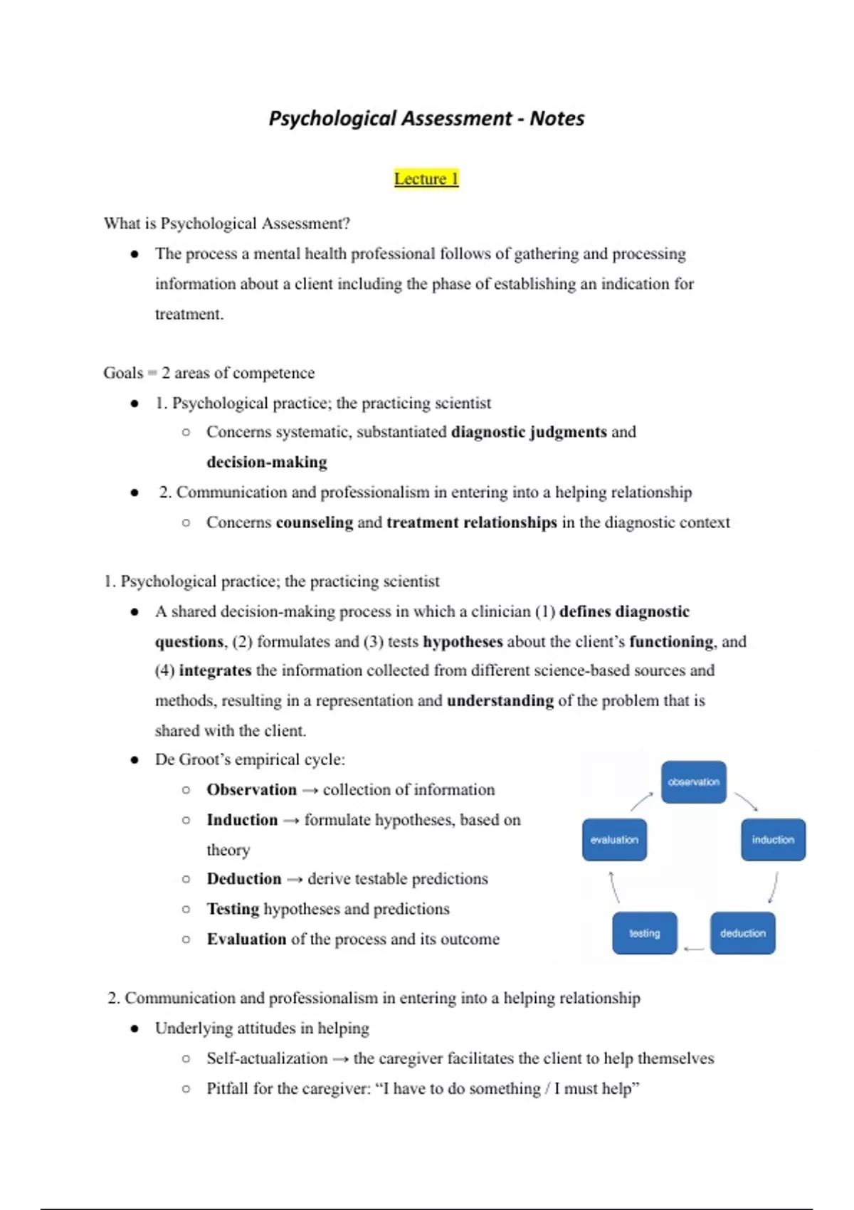 questions, (2) formulates and (3) tests hypotheses about the client’s functioning, and