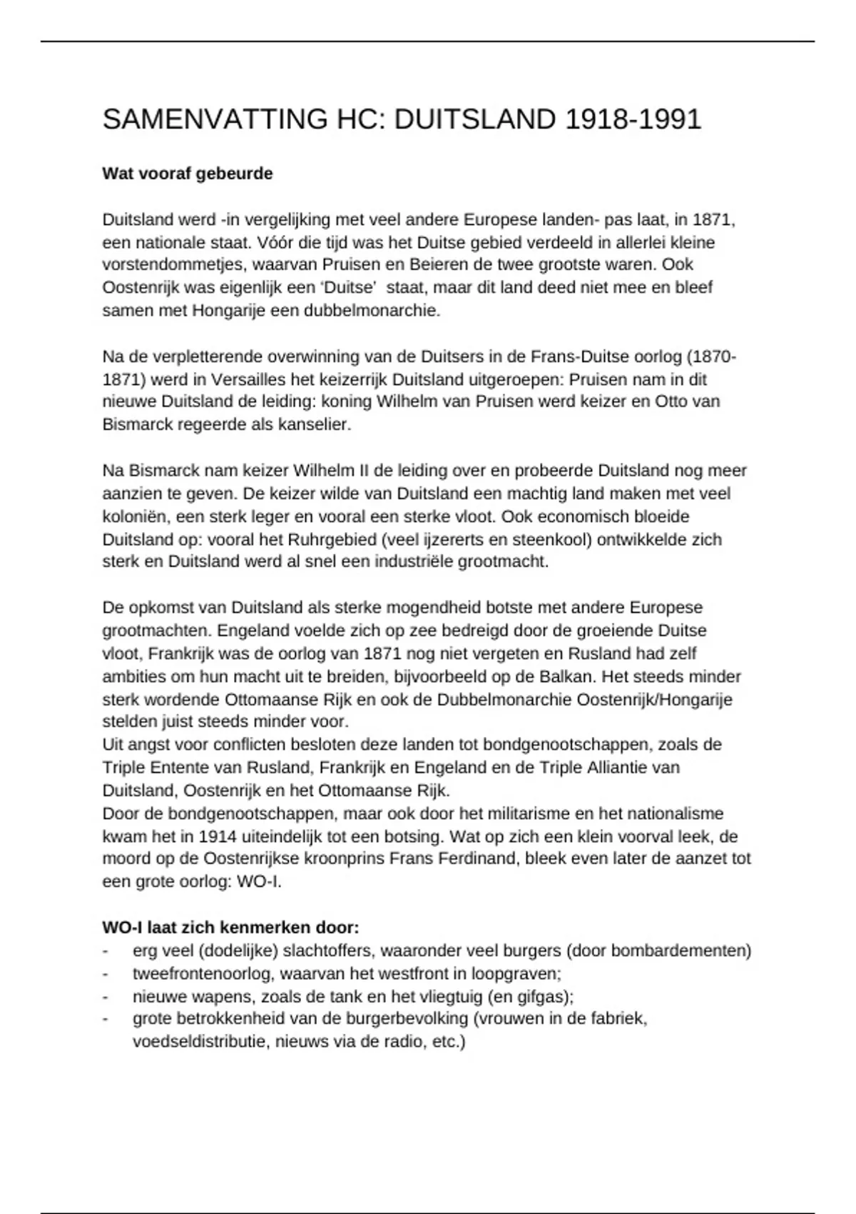 SAMENVATTING HC: DUITSLAND 1918-1991