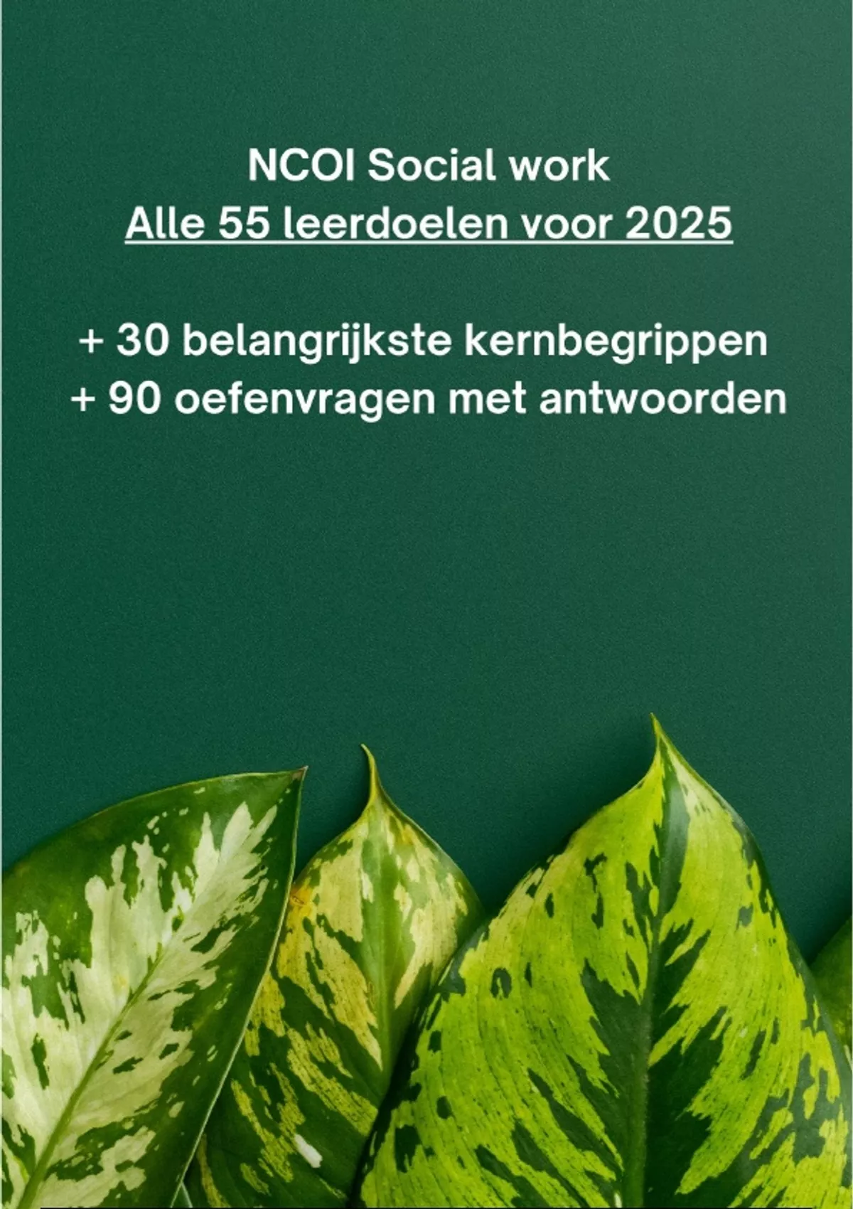 Samenvatting NCOI Social Work - alle leerdoelen (55) voor 2025 + 55 belangrijke kernbegrippen + 100 oefenvragen met antwoorden