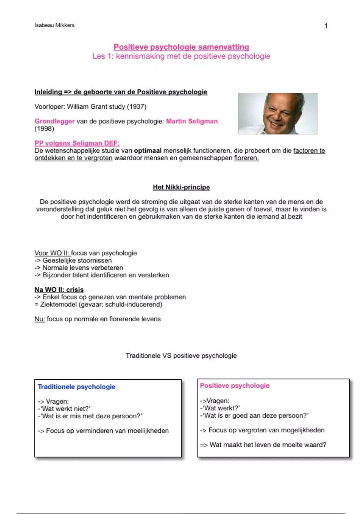 Inleiding => de geboorte van de Positieve psychologie