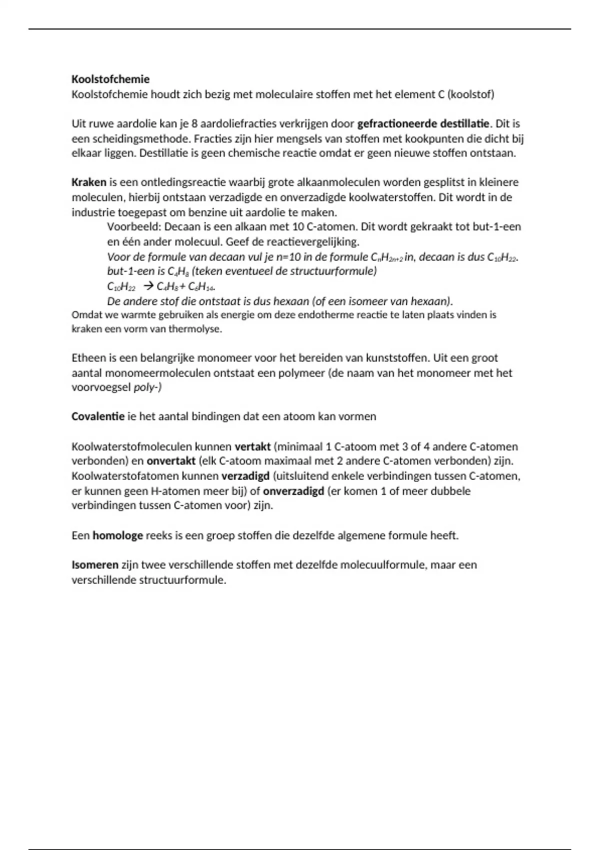 moleculen, hierbij ontstaan verzadigde en onverzadigde koolwaterstoffen. Dit wordt in de