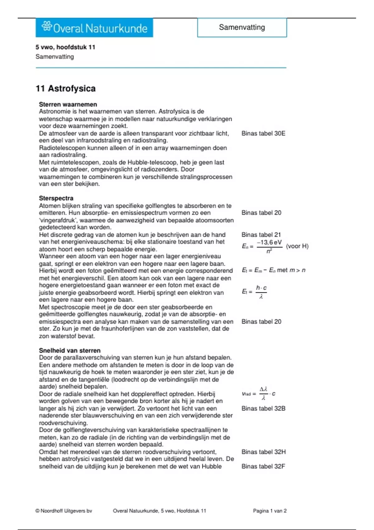 langer als hij zich van je verwijdert. Zo vertoont het licht van een Binas tabel 32B
