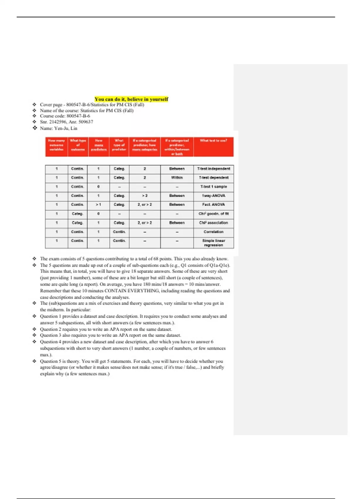 analysis (even if the assumption has been met). Hence, for this exam, also