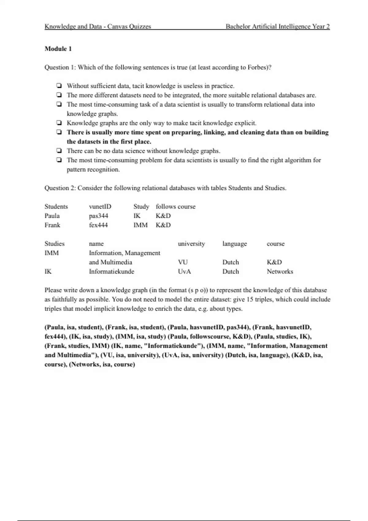 Knowledge and Data - Canvas Quizzes Bachelor Artificial Intelligence Year 2