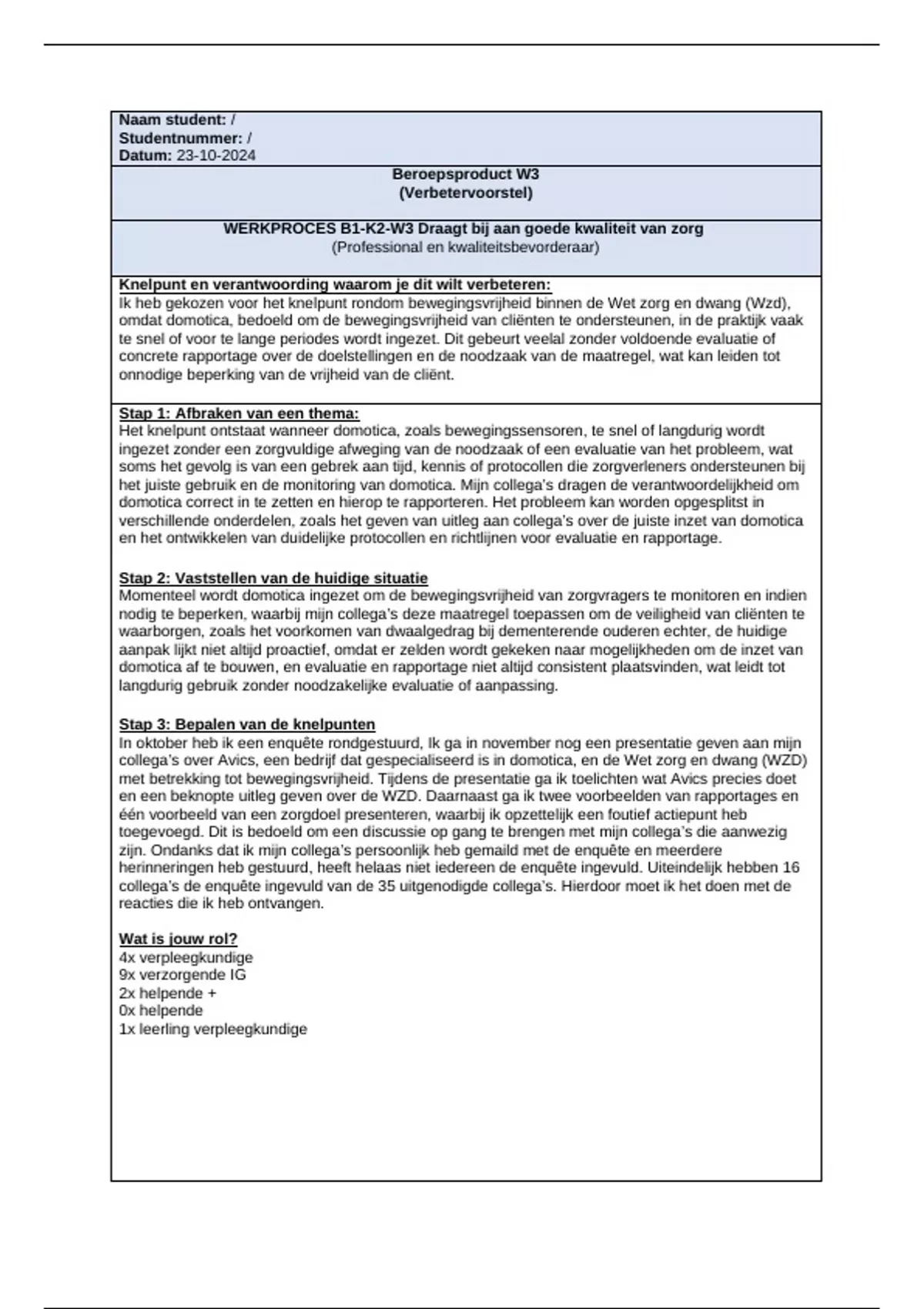 WERKPROCES B1-K2-W3 Draagt bij aan goede kwaliteit van zorg