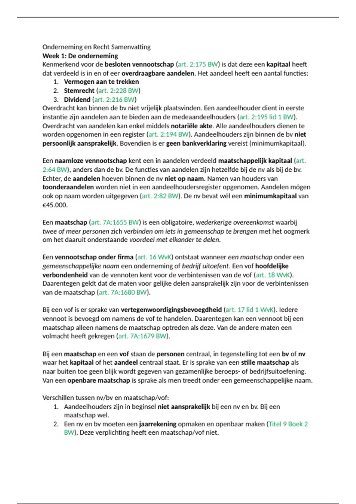 , Week 2: Personenvennootschappen