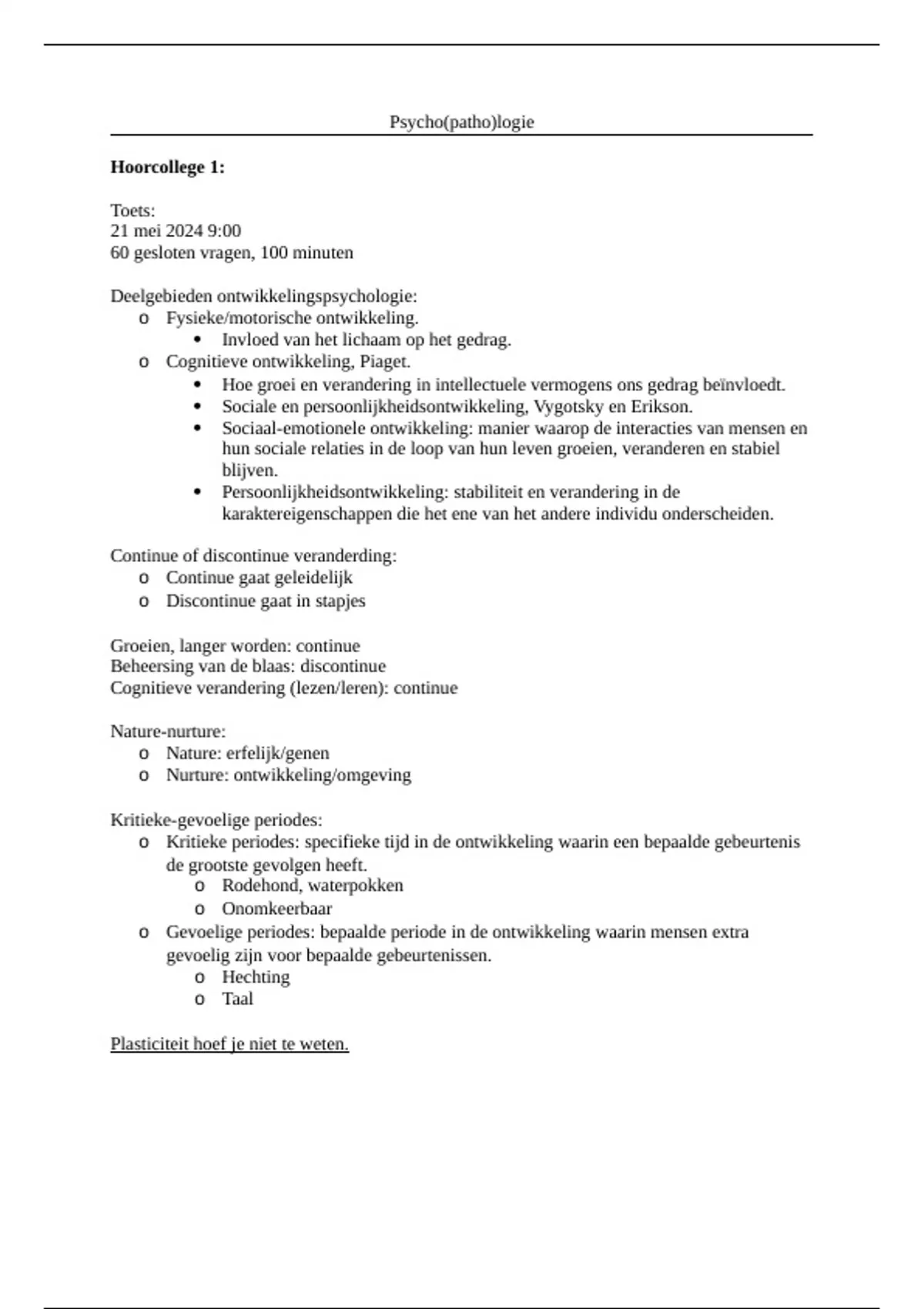 Plasticiteit hoef je niet te weten.