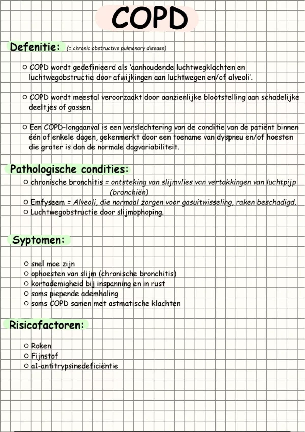 Samenvatting en aantekeningen van casus COPD van FAMA101 (chronische aandoeningen). Het beleid van het jaar 2024