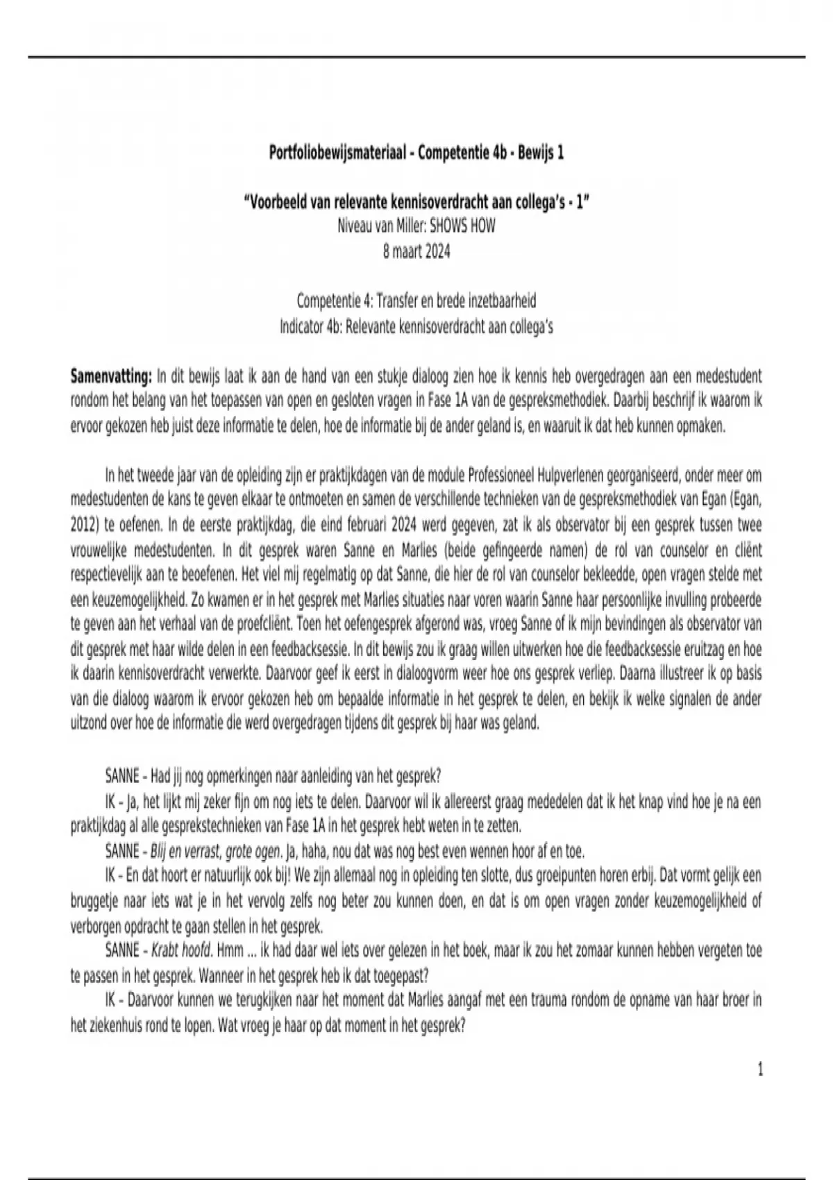 Samenvatting: In dit bewijs laat ik aan de hand van een stukje dialoog zien hoe ik kennis heb overgedragen aan een medestudent