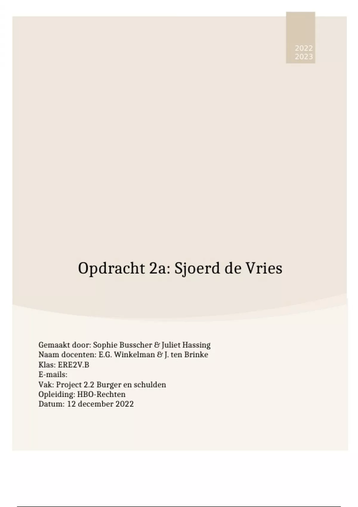 Opdracht 2a: Sjoerd de Vries
