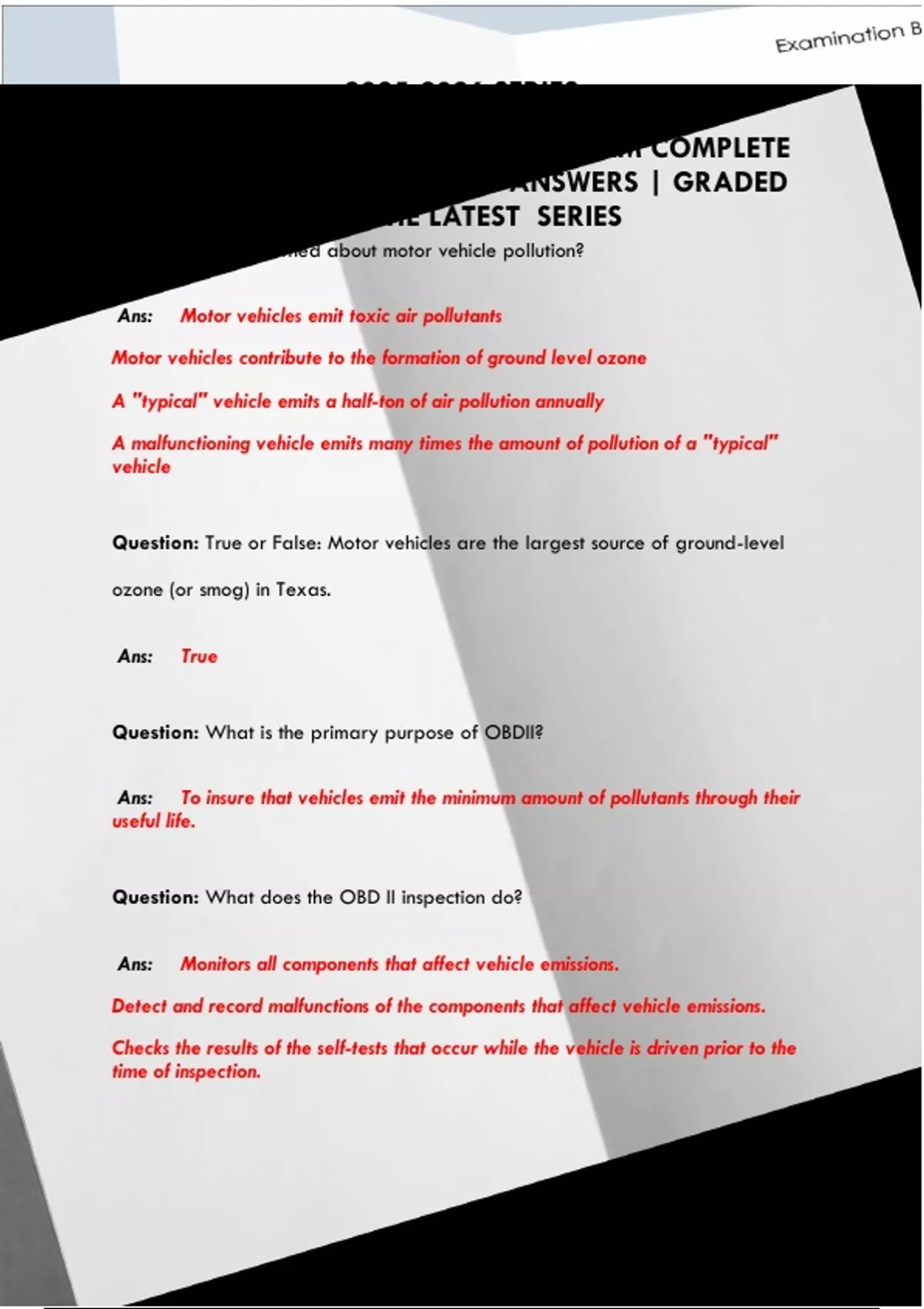 TEXAS EMISSIONS INSPECTIONS EXAM COMPLETE