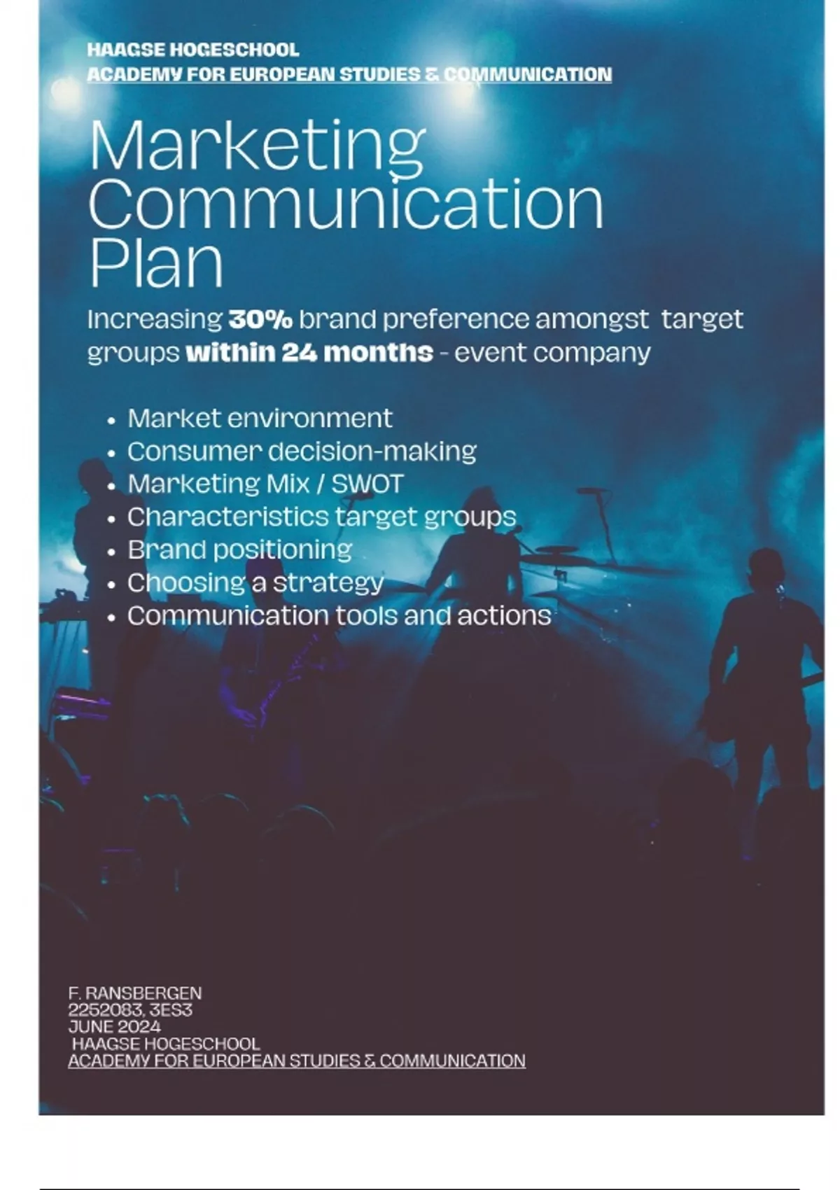 This report, in the form of the Marketing Communication plan, has been written with the