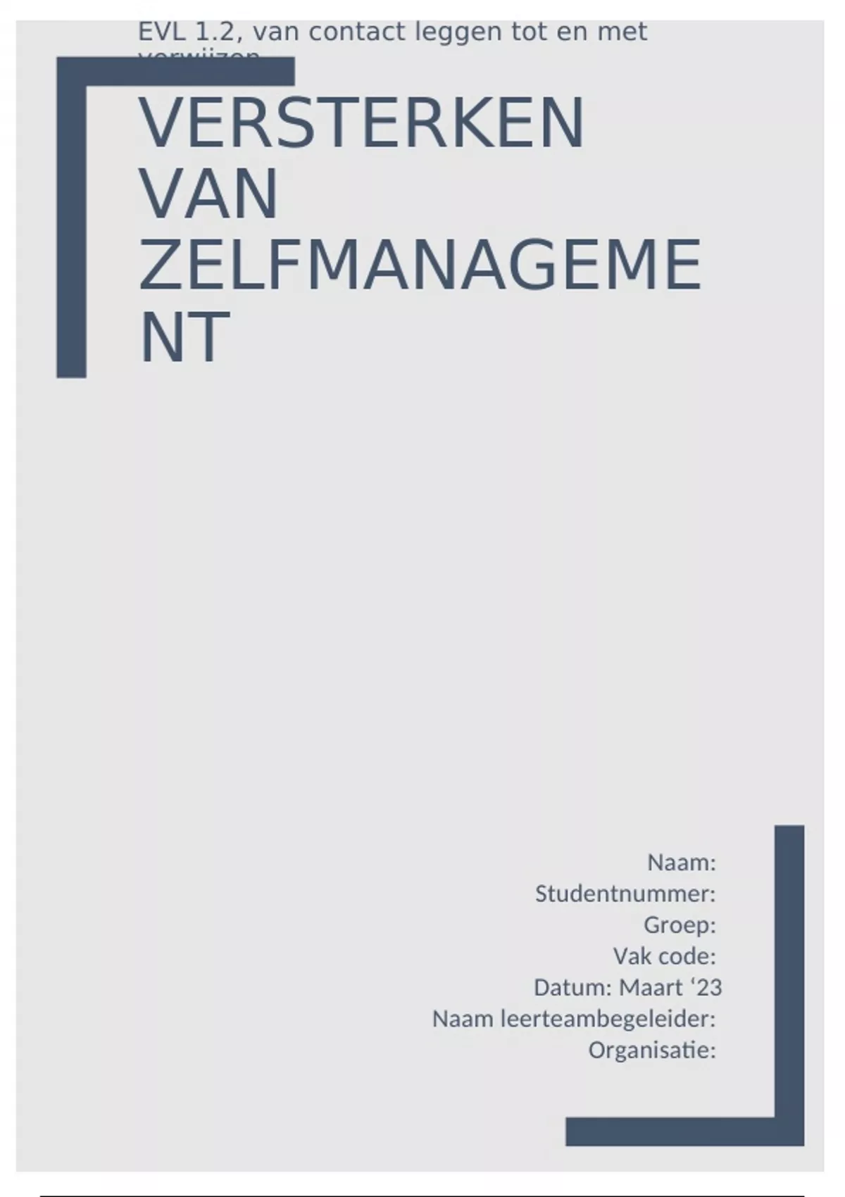 Voor u ligt het verslag dat ik heb opgesteld voor de EVL ‘Versterken van zelfmanagement’. In