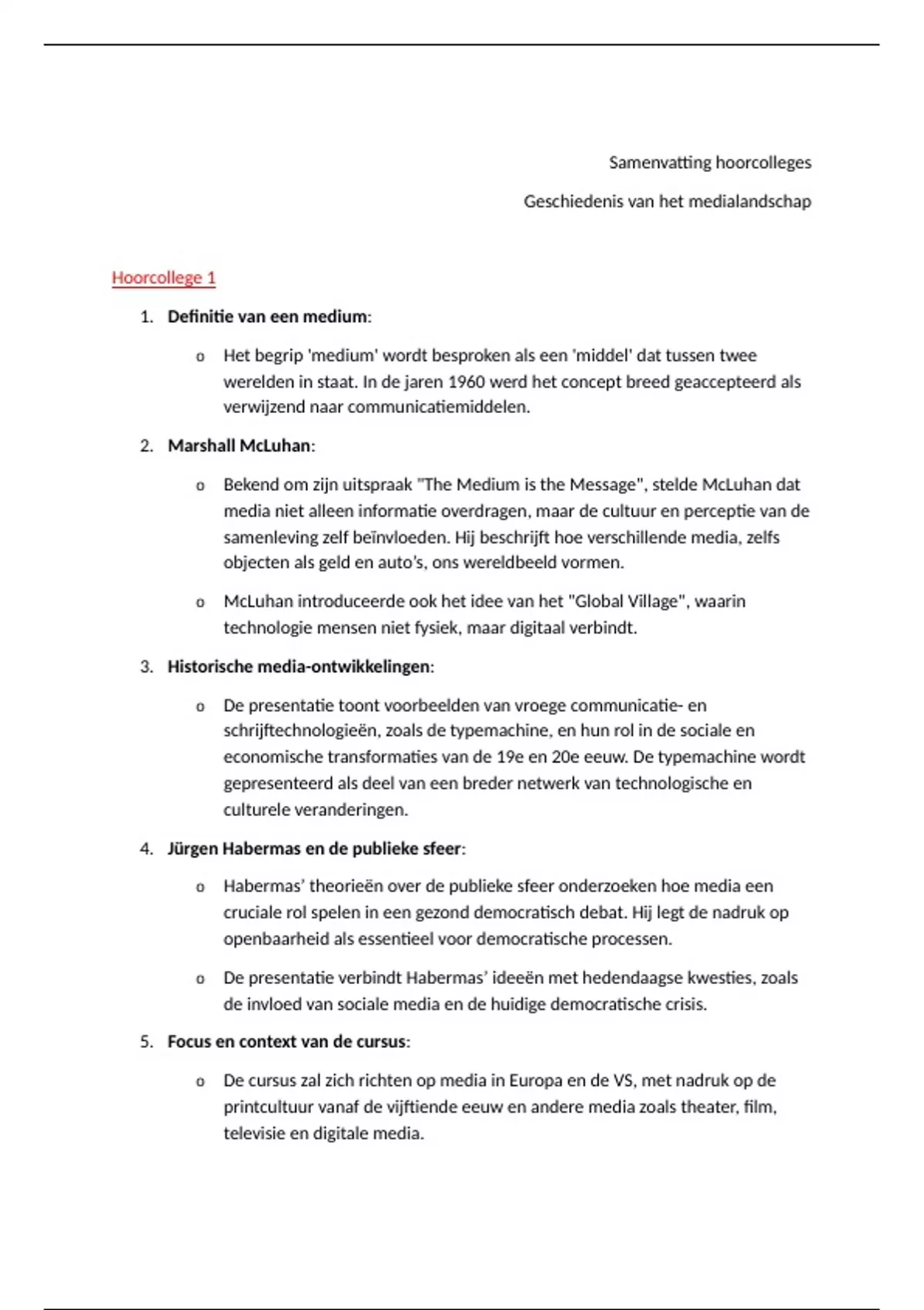 Samenvatting hoorcolleges