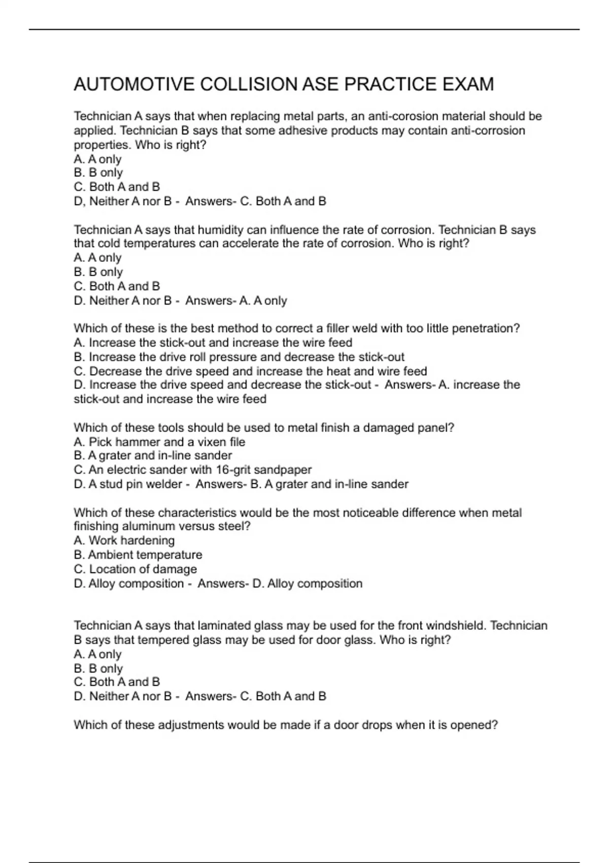 AUTOMOTIVE COLLISION ASE PRACTICE EXAM