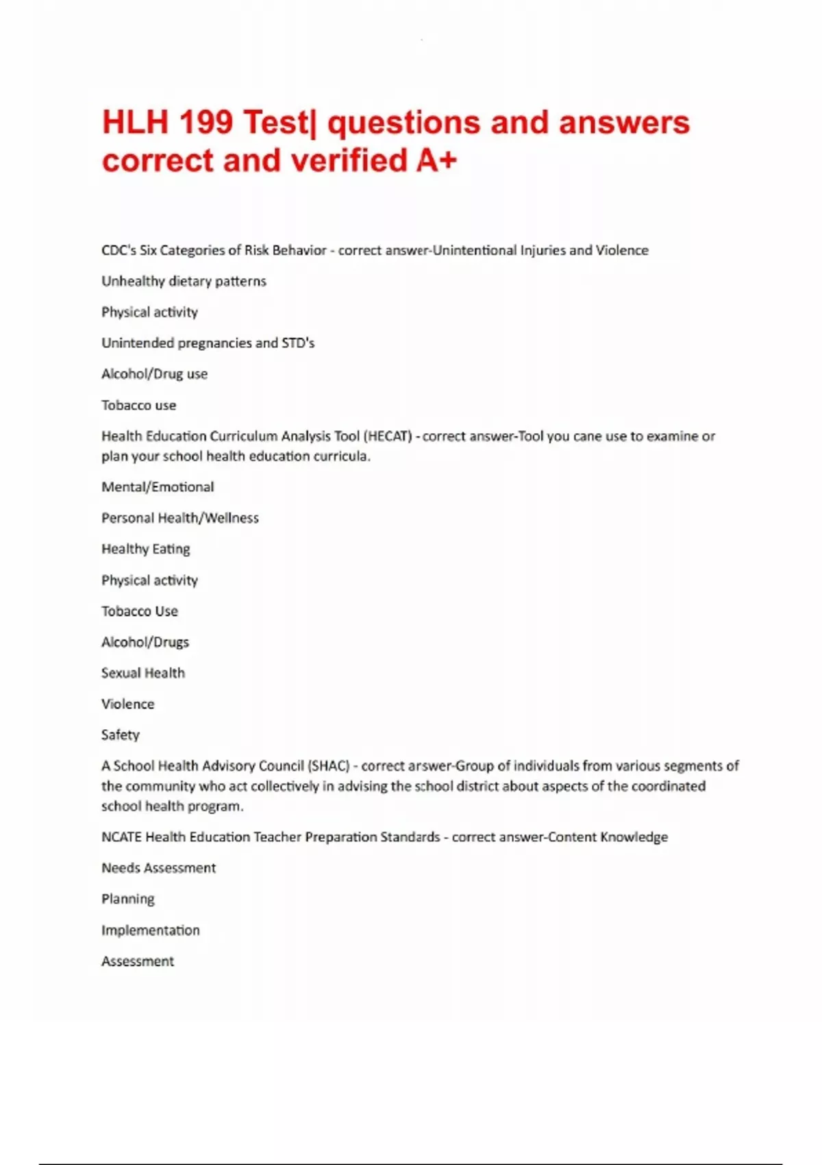 HLH 199 Test questions and answers correct and verified A+HLH 199 Test questions and answers correct and verified A+HLH 199 Test questions and answers correct and verified A+HLH 199 Test questions and answers correct and verified A+HLH 199 Test questions and answers correct and verified A+HLH 199 Test questions and answers correct and verified A+