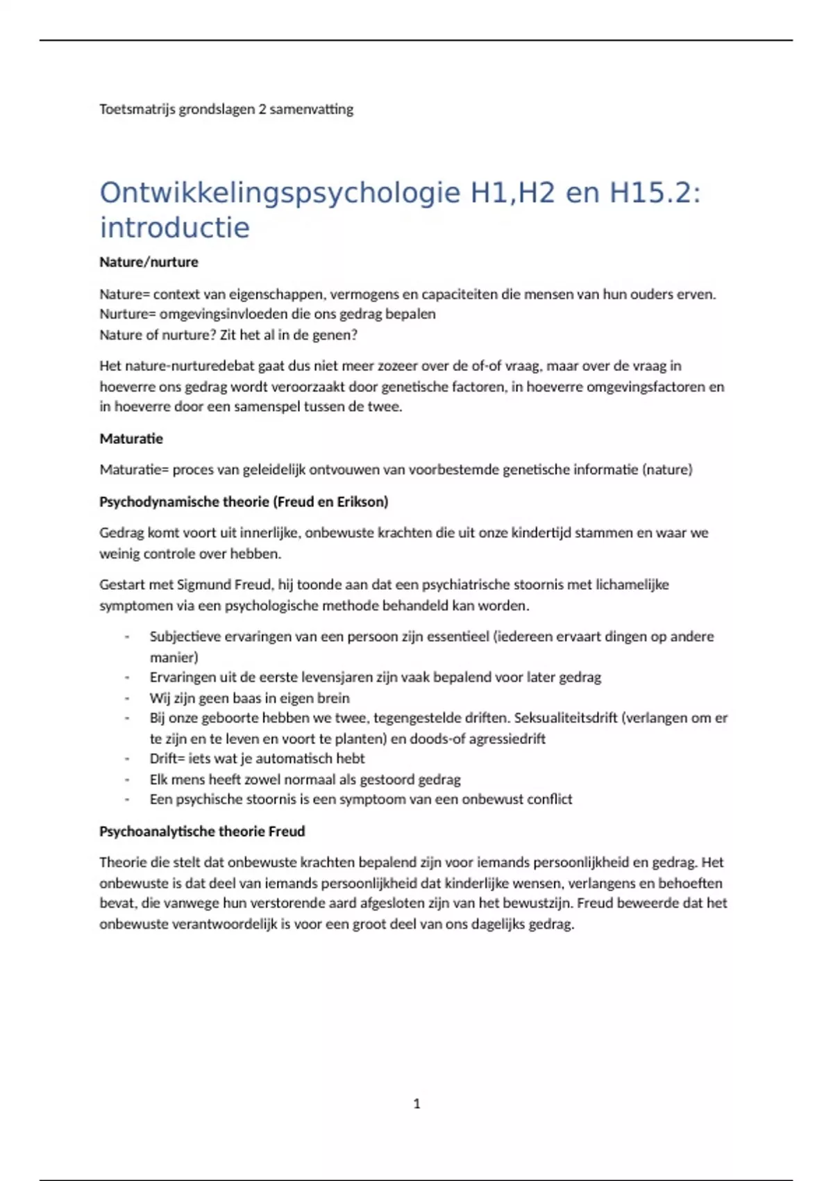 Ontwikkelingspsychologie H1,H2 en H15.2: