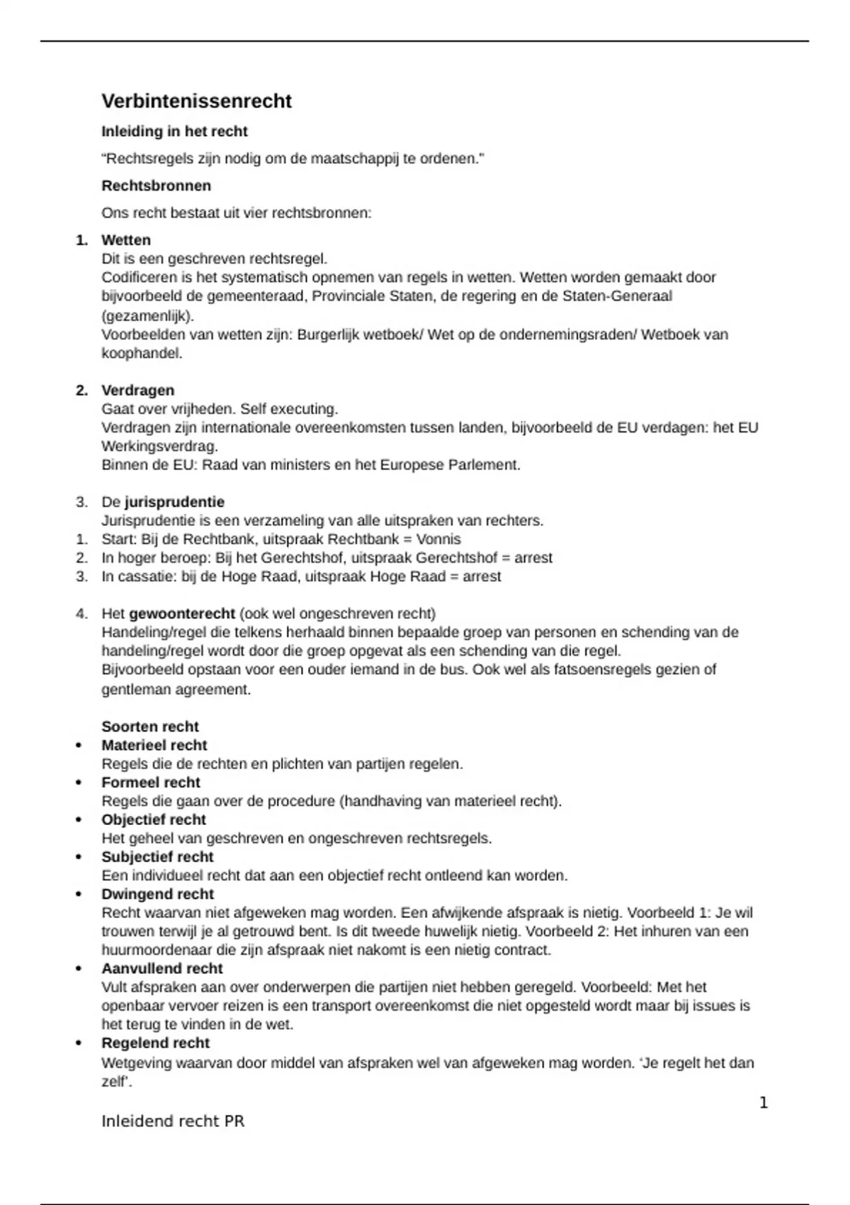Recht vloeit voort uit rechtsbronnen en dat zijn: wetten, verdragen, jurisprudentie en de gewoonte.