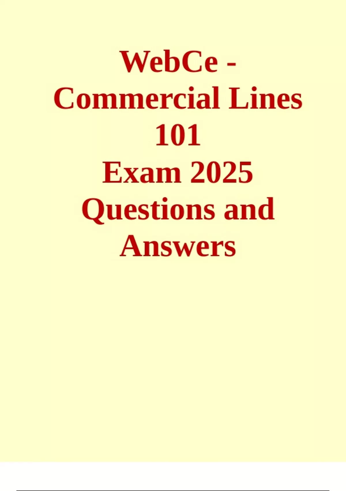 WebCe - Commercial Lines 101 Exam 2025 Questions and Answers
