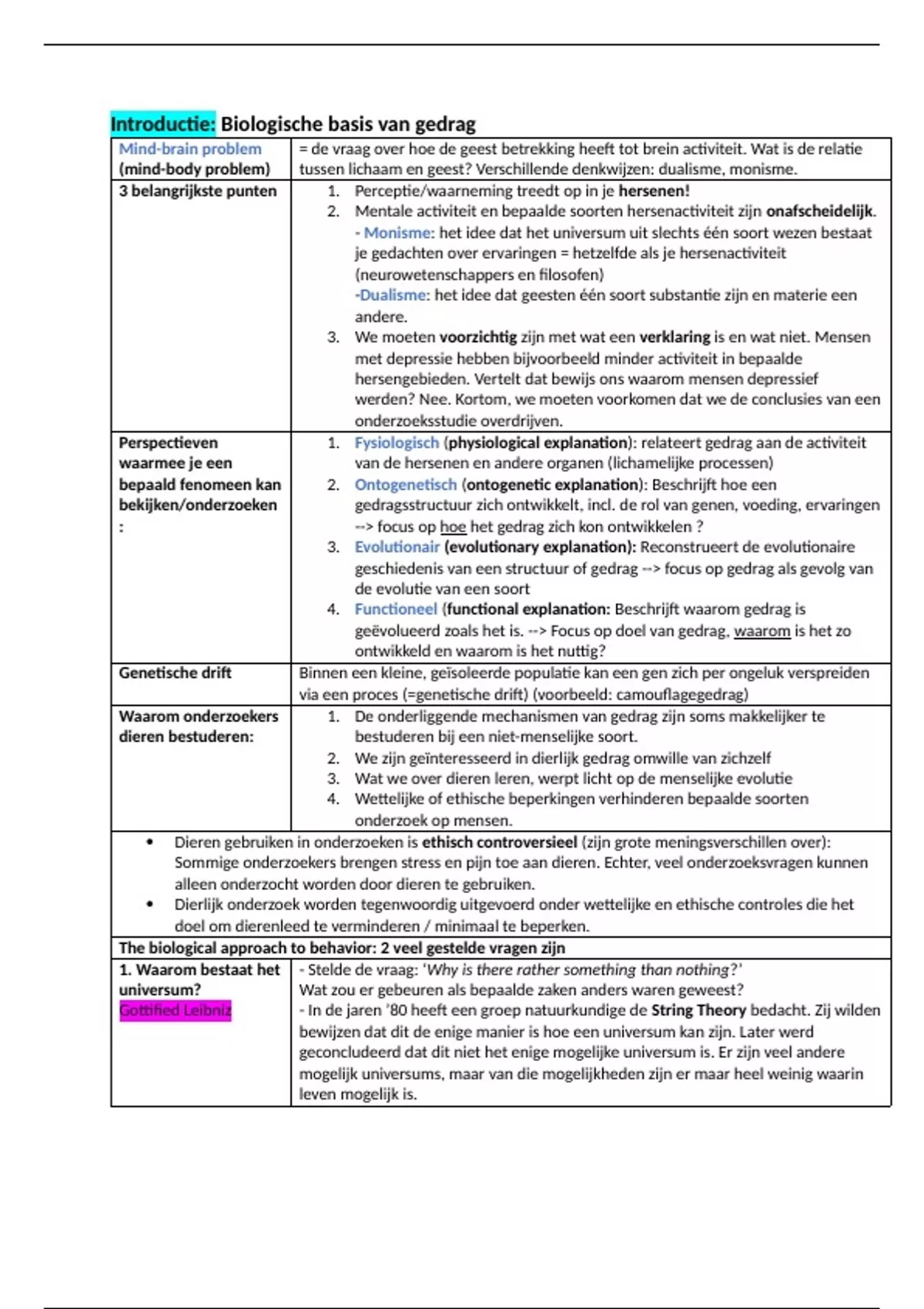 Uitgebreide samenvatting Biologische Psychologie (biological psychology - Kalat) + oefenvragen