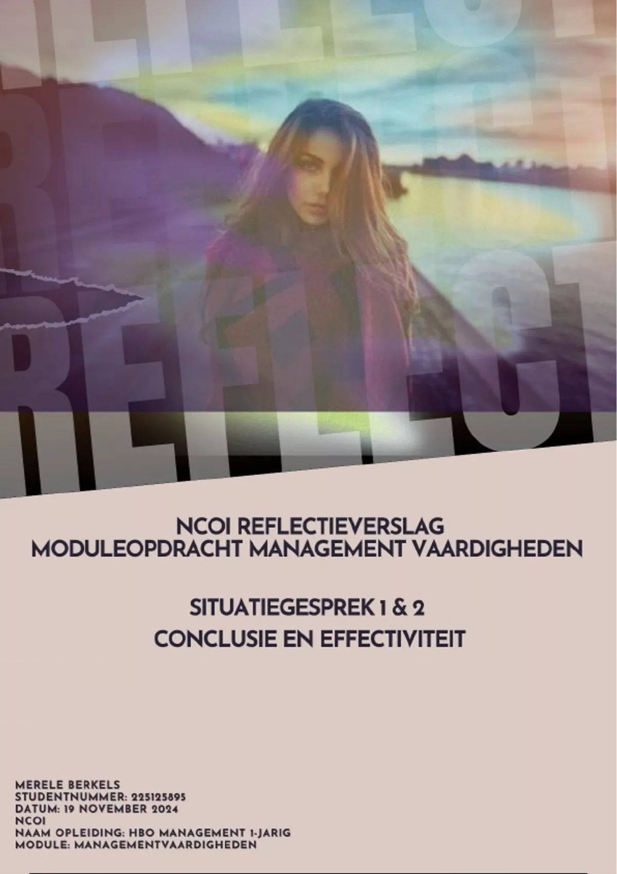 Voorbeeld reflectieverslag NCOI HBO Management 1 jaar - Managementvaardigheden 2024 - Cijfer 9 met feedback!