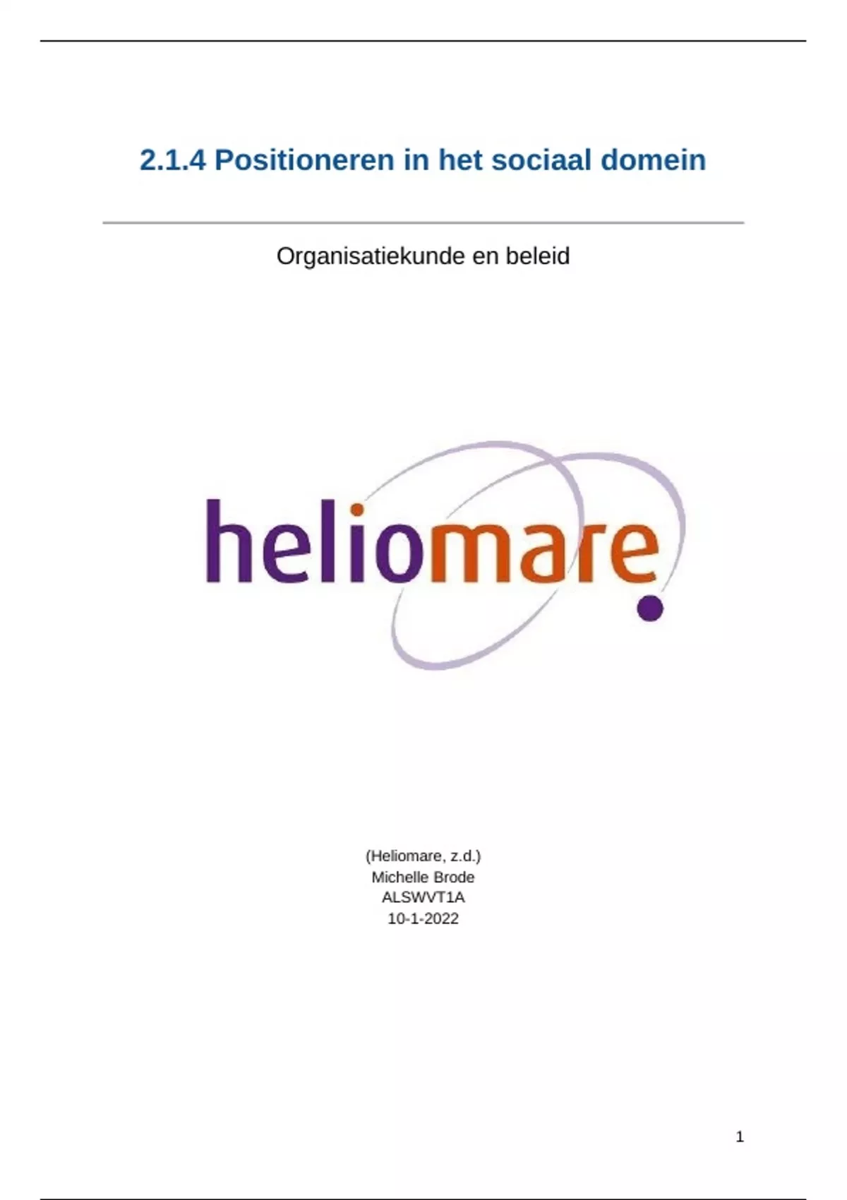 In het verslag 2.1.4 Positioneren in het sociaal domein werk ik 9 opdrachten uit waarin ik de