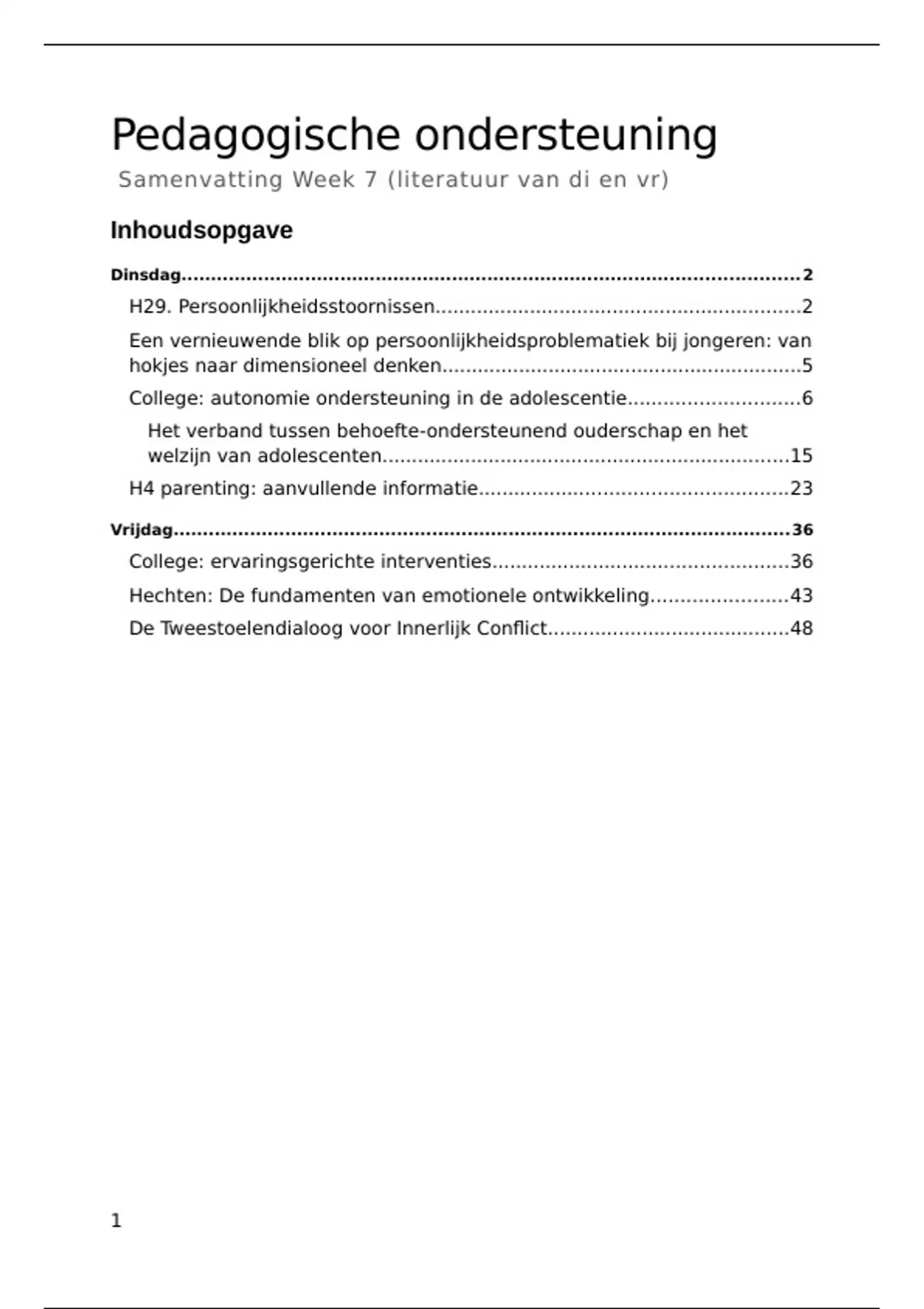 Samenvatting Week 7 Pedagogische ondersteuning literatuur en college aantekeningen