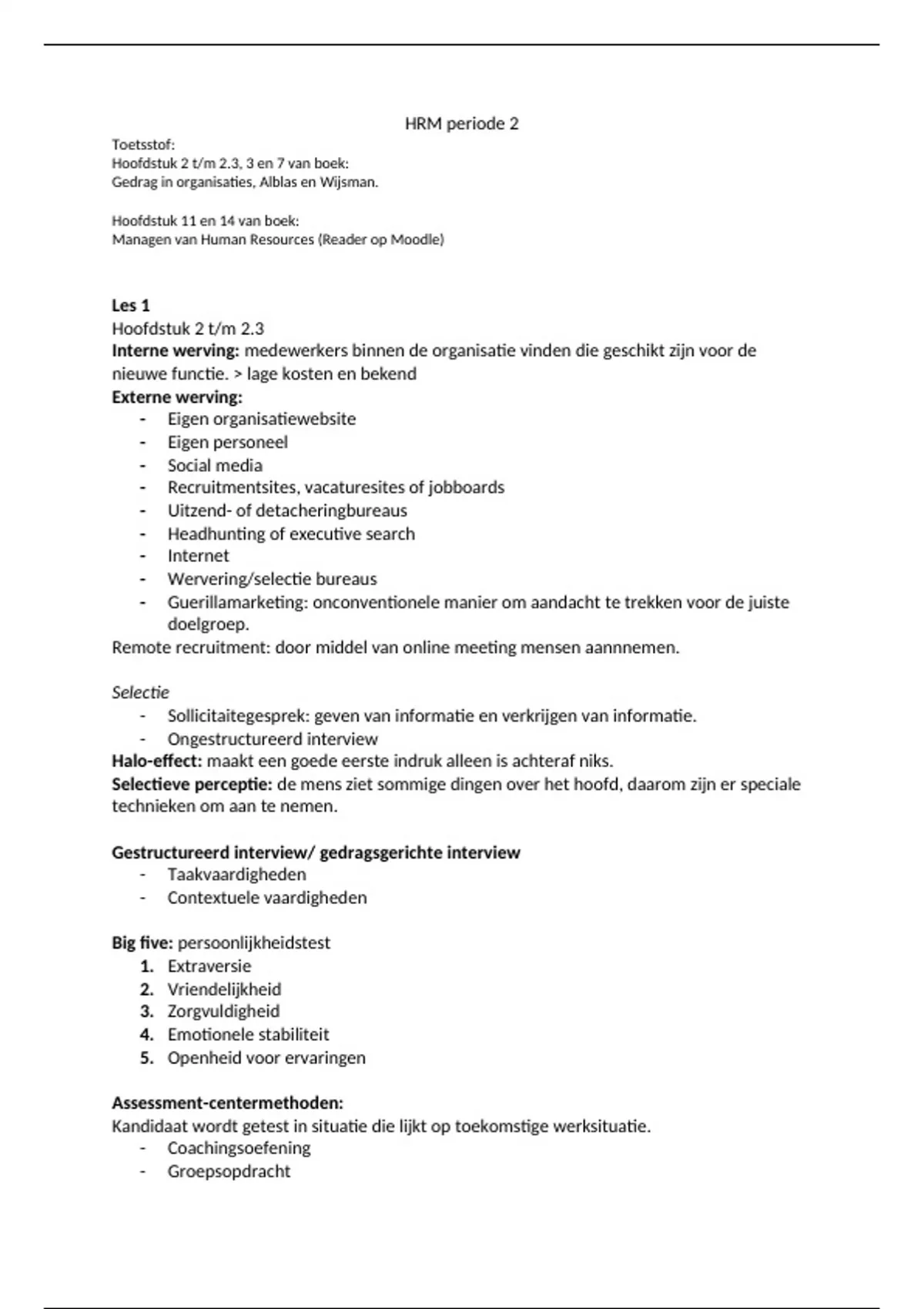 Dit is een samenvatting van HRM/GIO periode 2 van het eerste jaar van de studie Business studies.
