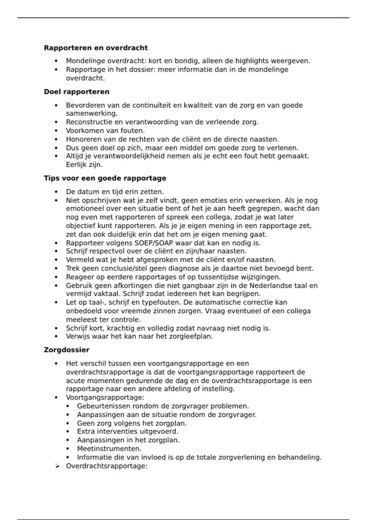Rapporteer volgens SOEP/SOAP waar dat kan en nodig is.