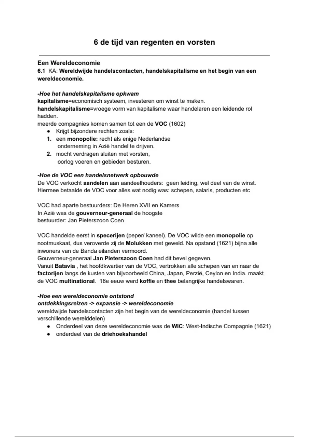 6.1 KA: Wereldwijde handelscontacten, handelskapitalisme en het begin van een