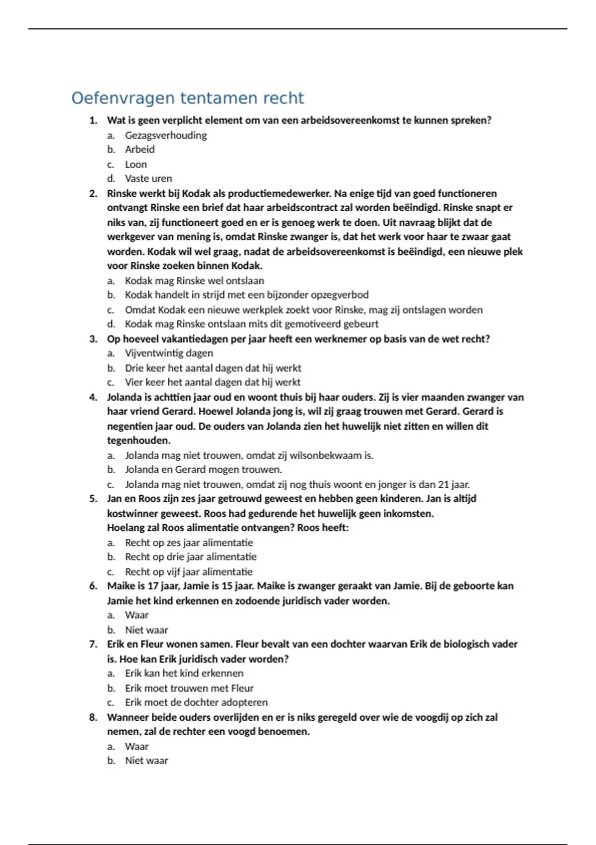Oefenvragen tentamen recht