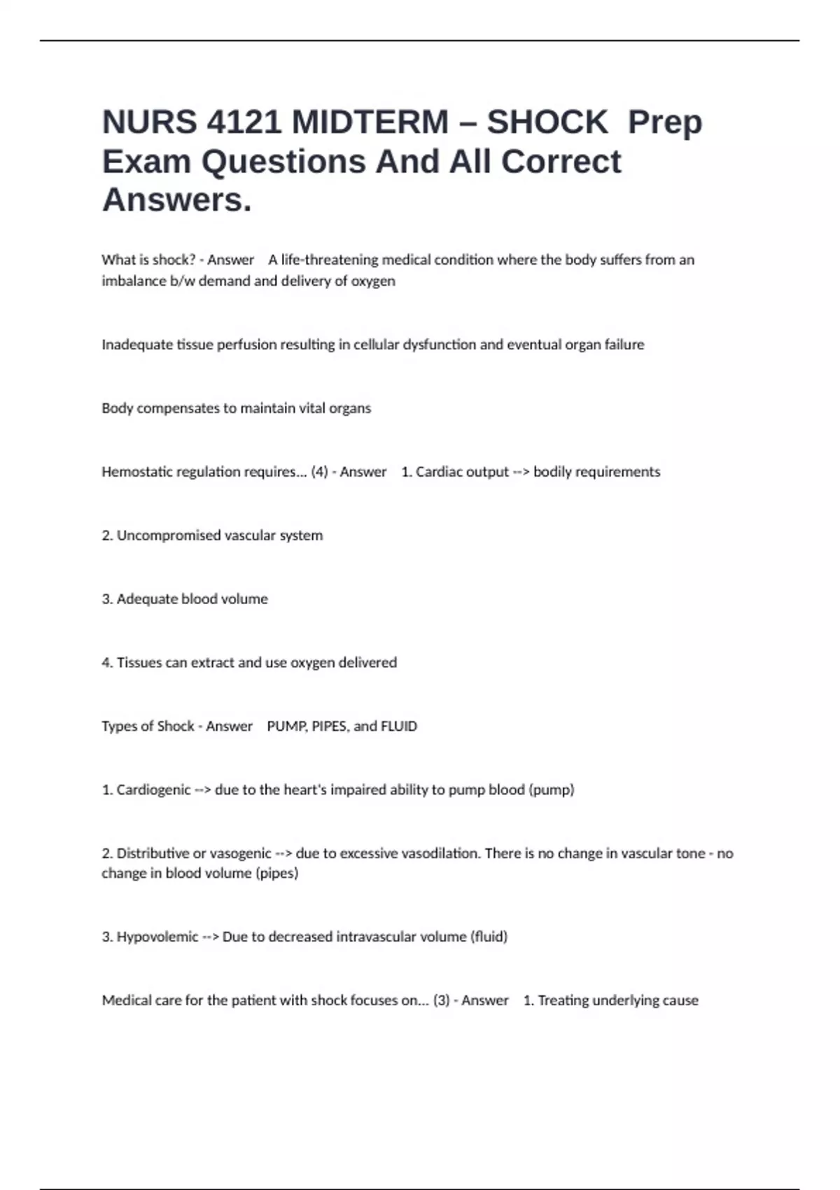Types of Shock - Answer PUMP, PIPES, and FLUID